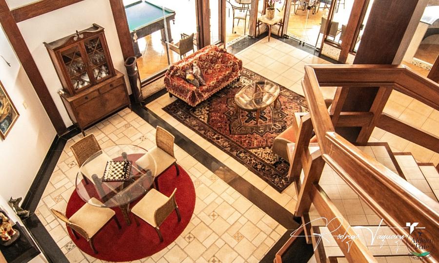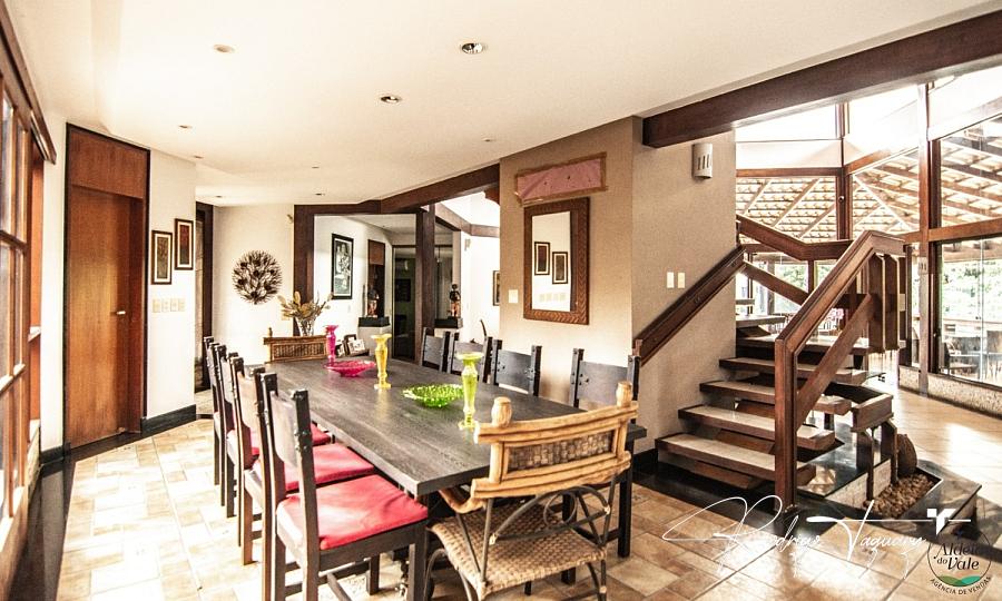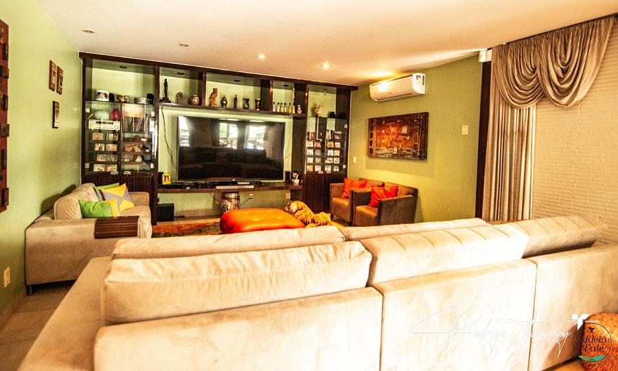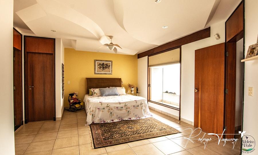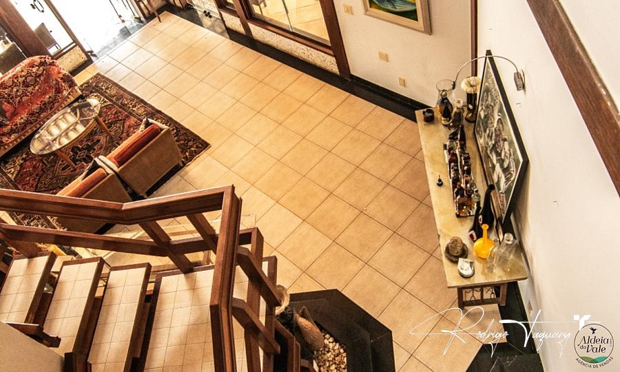 Sobrado espetacular no Aldeia do Vale, com projeto imponente, lazer diferenciado e paisagismo exuberante. No térreo, sala para 3 ambientes integrada à ampla varanda gourmet com churrasqueira, sala de jogos, home, sala de jantar, escritório com vista para lago ornamental, 1 suíte, adega, lavabo, cozinha, área de serviço, DCE e escaninho.