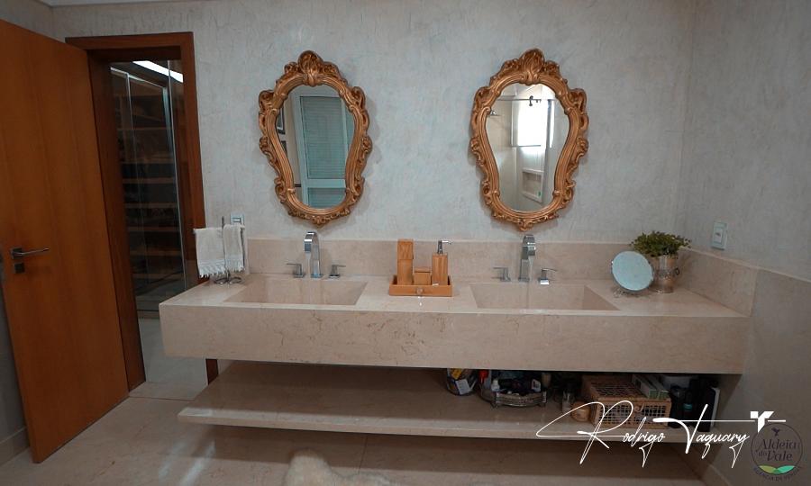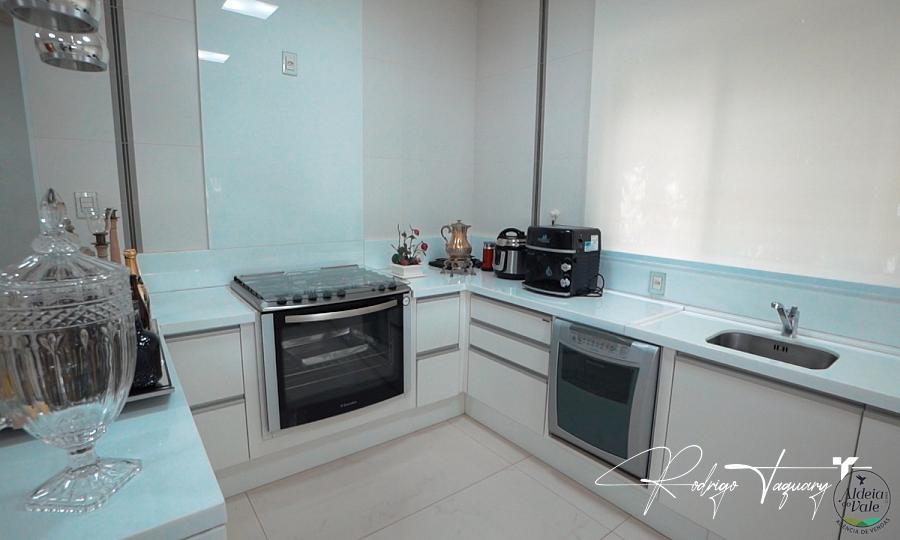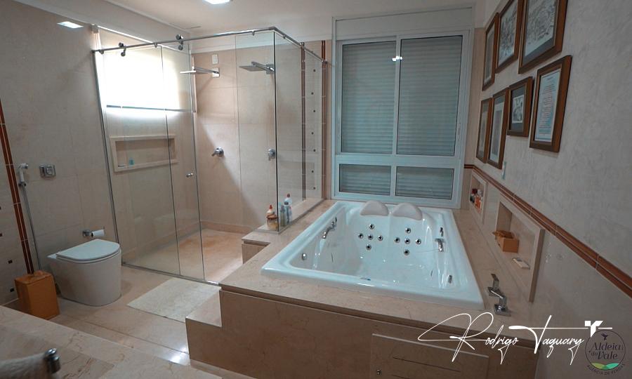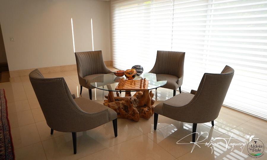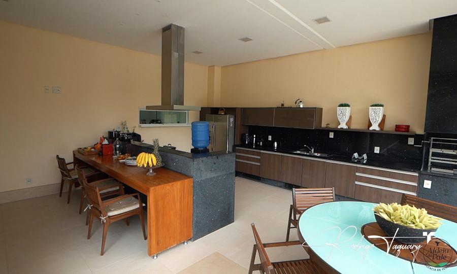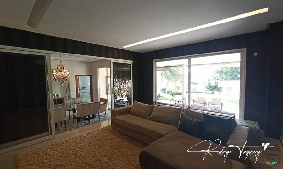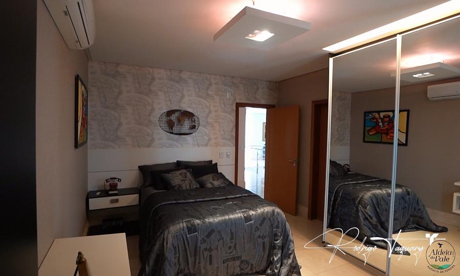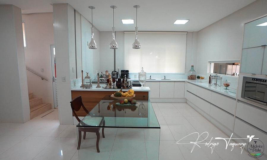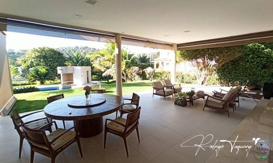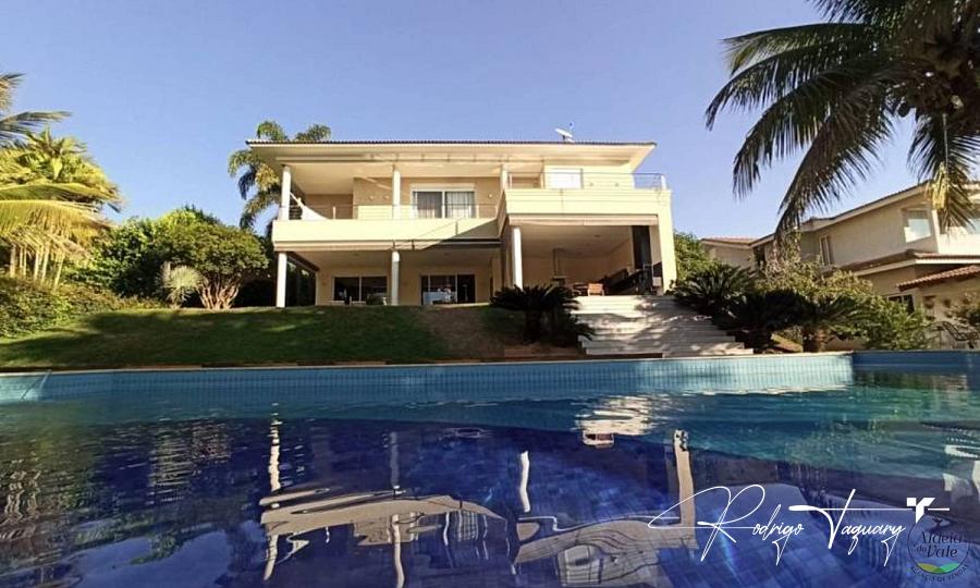Sobrado imponente no Aldeia do Vale, com arquitetura neoclássica e ambientes sofisticados. Conta com ampla sala com pé-direito elevado, escritório, home cinema e cozinha com armários. No piso superior, 4 suítes, incluindo a máster com jacuzzi e closet.