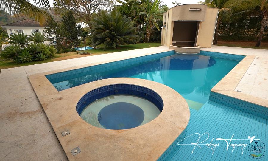 Área gourmet com churrasqueira | Piscina com cascata | Ofurô | Sauna | Amplo deck integrado ao jardim | Paisagismo planejado com irrigação automática | Poço artesiano | Acabamentos em mármore