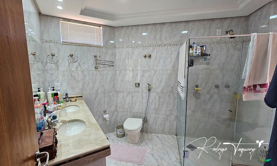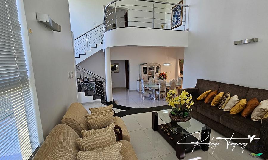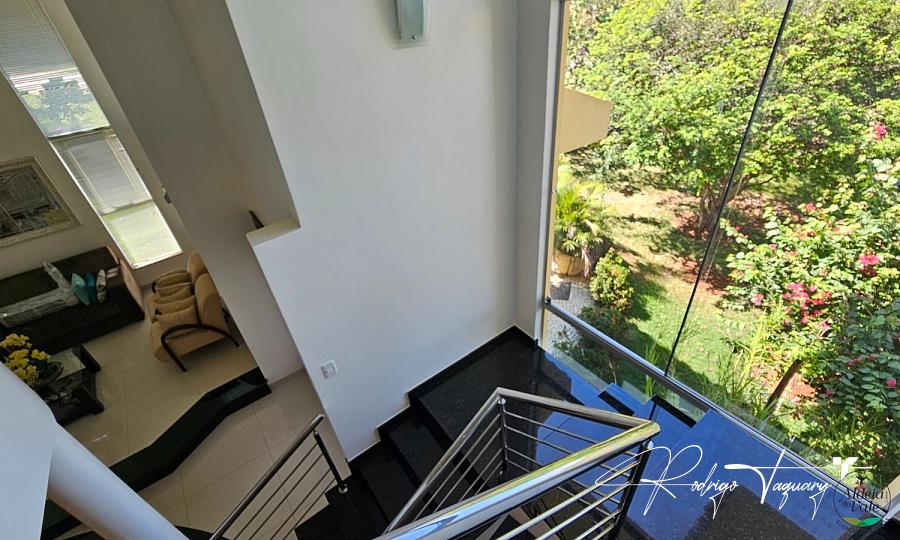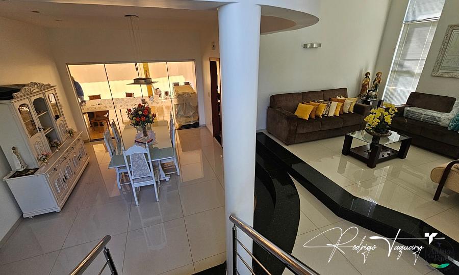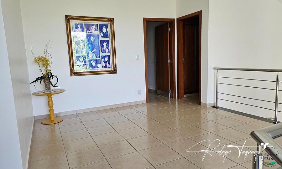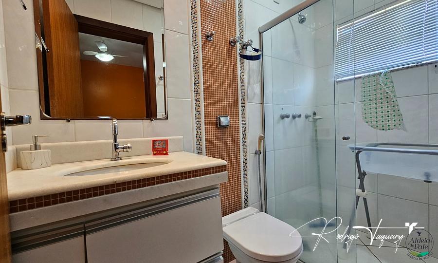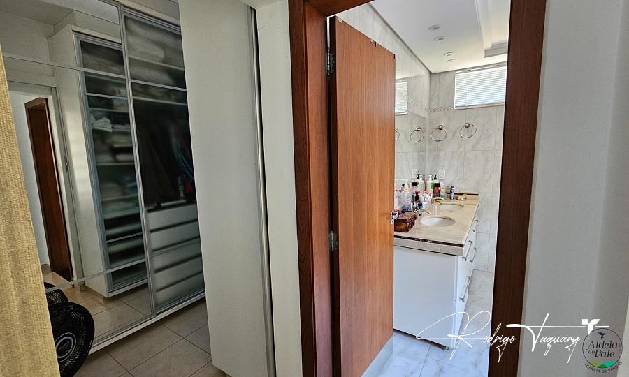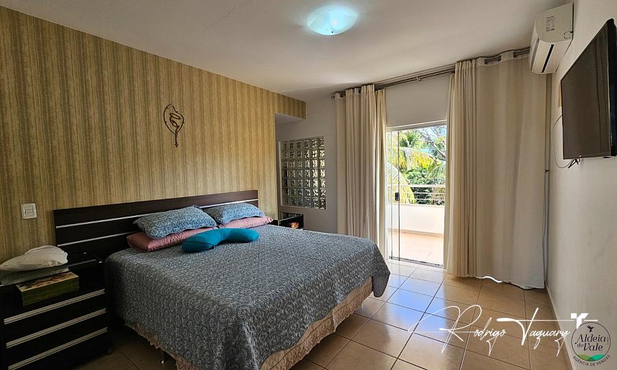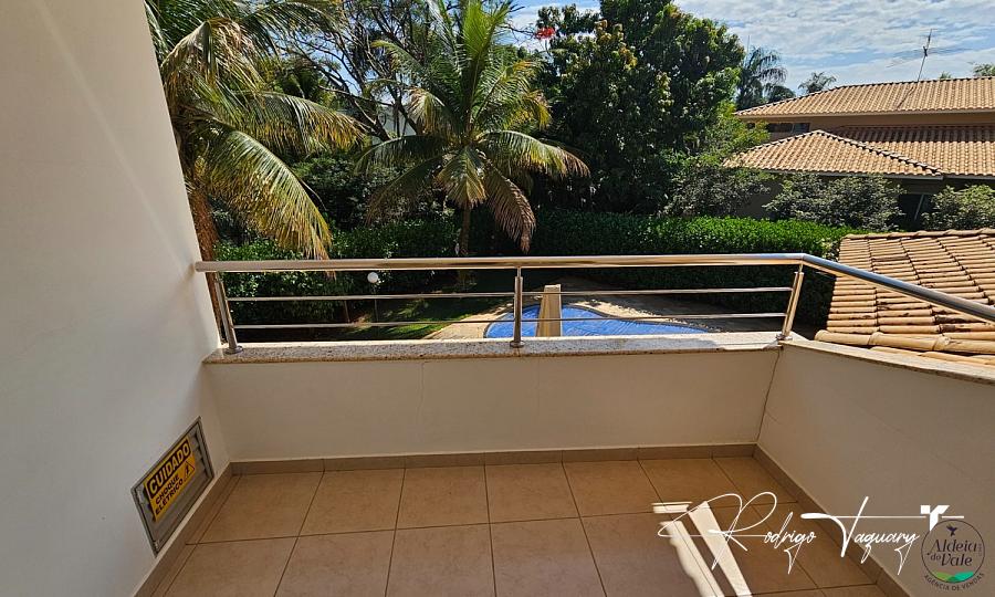 Sobrado amplo no Aldeia do Vale, com quintal encantador, integração dos ambientes e projeto versátil. São 4 suítes no piso superior, incluindo máster com closet e sacada, além de sala íntima. No térreo, 1 quarto reversível com banheiro social, hall de entrada, salas de visitas, jantar e TV, cozinha espaçosa, área de passar, despensa, lavanderia e DCE completa.