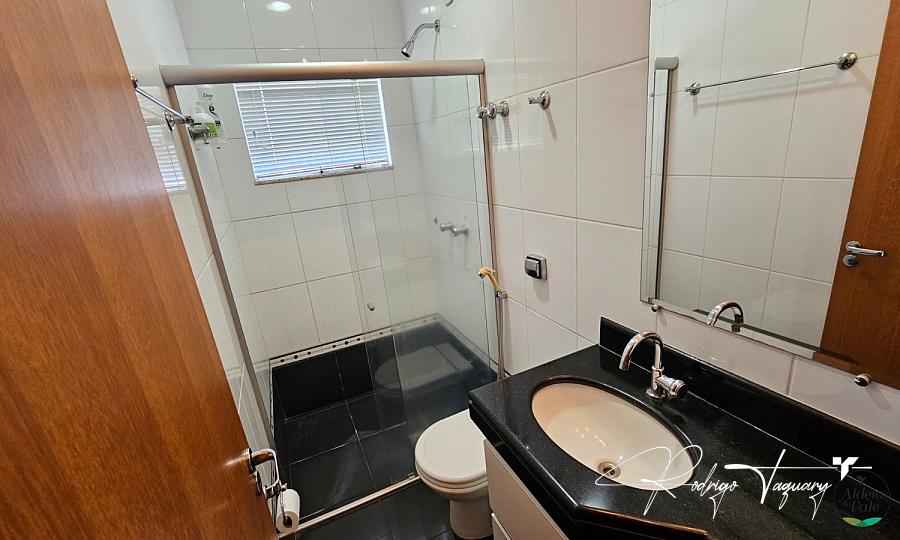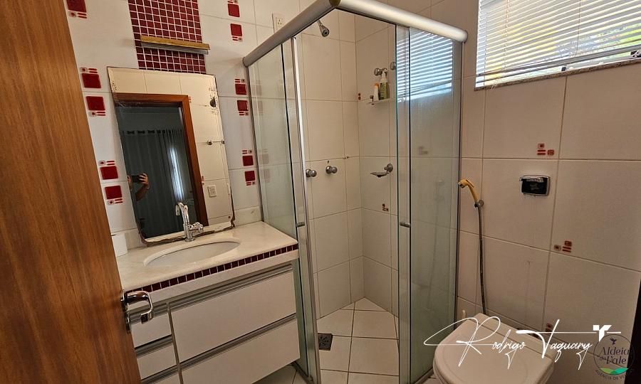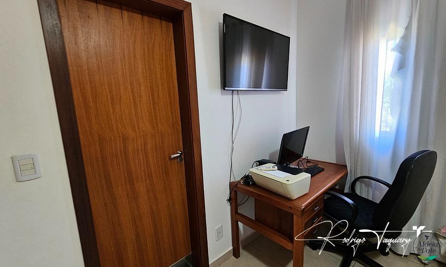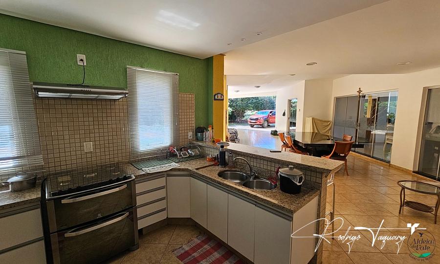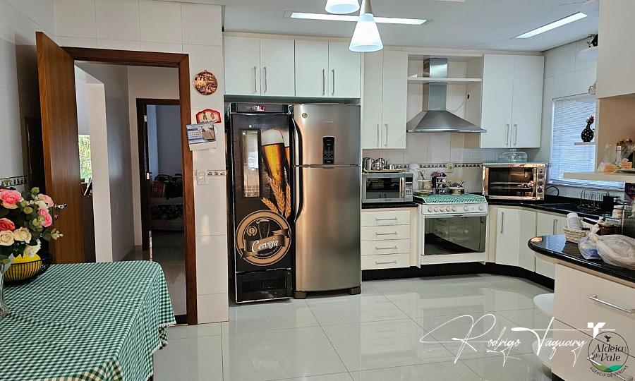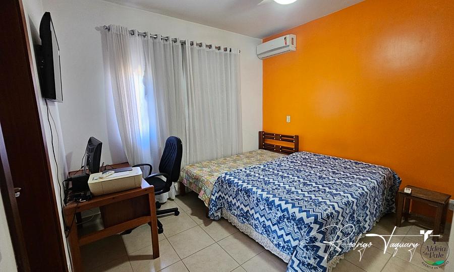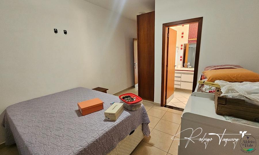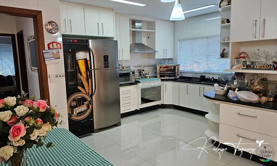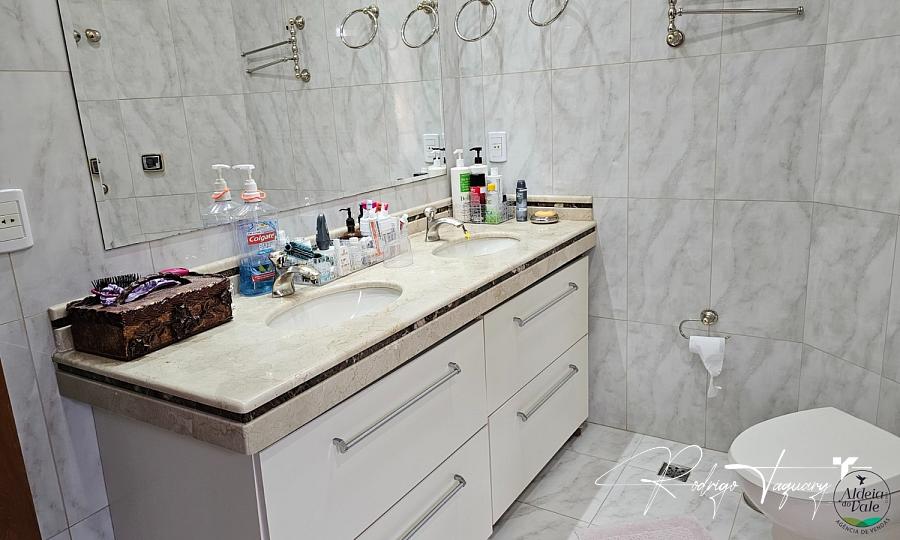 Sobrado amplo no Aldeia do Vale, com quintal encantador, integração dos ambientes e projeto versátil. São 4 suítes no piso superior, incluindo máster com closet e sacada, além de sala íntima. No térreo, 1 quarto reversível com banheiro social, hall de entrada, salas de visitas, jantar e TV, cozinha espaçosa, área de passar, despensa, lavanderia e DCE completa.