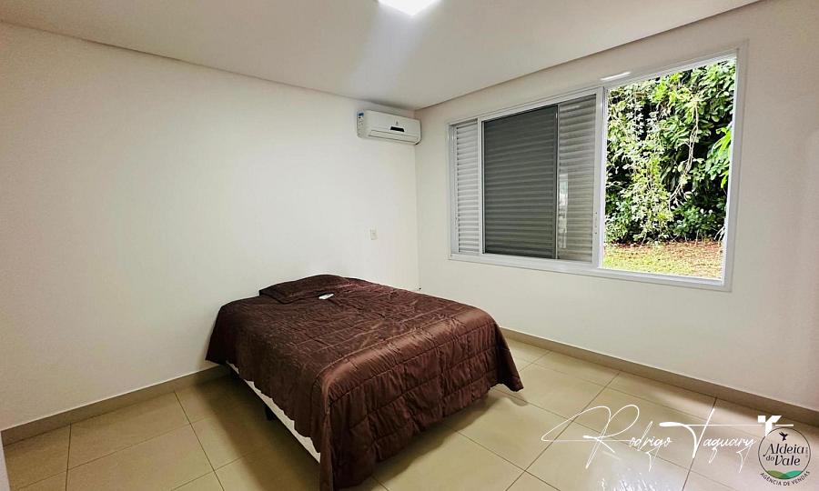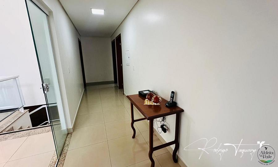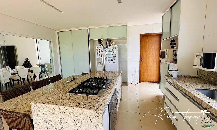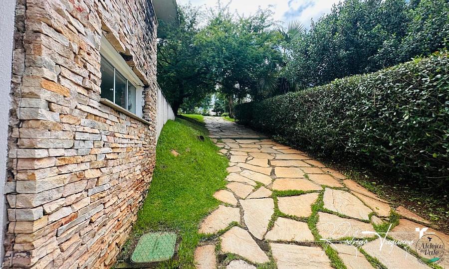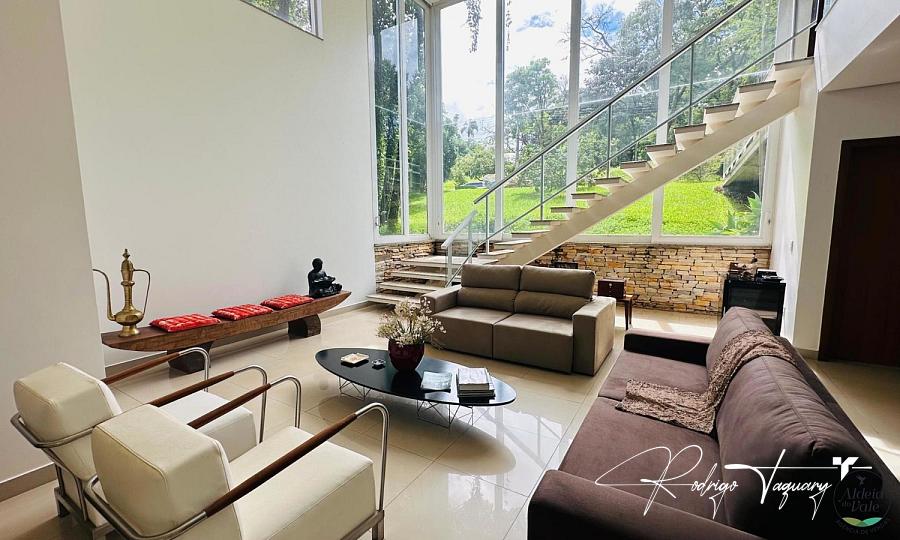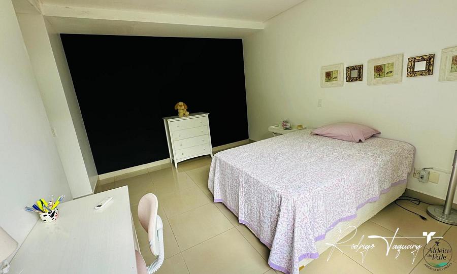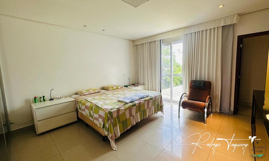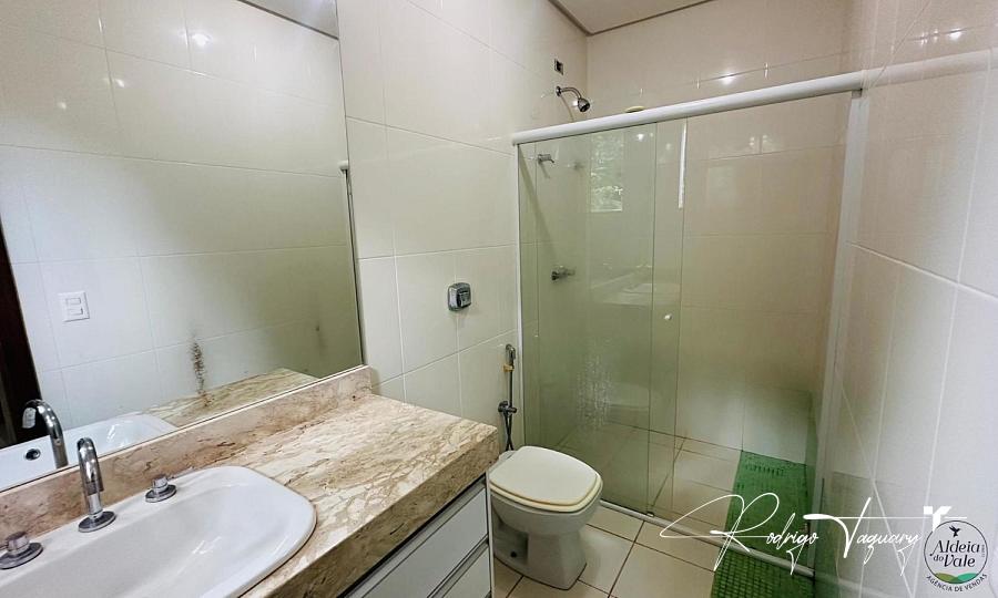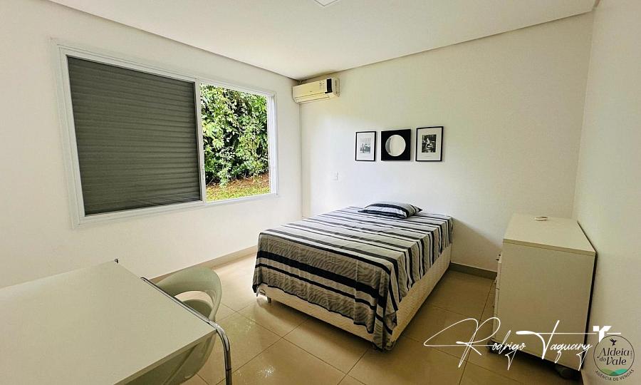 Sobrado exclusivo no Aldeia do Vale, com vista definitiva para o lago e a mata. Projeto funcional com ambientes integrados: salas de estar, jantar e TV, cozinha com varanda e lavabo. No piso superior, 4 suítes, incluindo a máster com closet, hidromassagem e varanda privativa. Garagem coberta para 2 veículos.