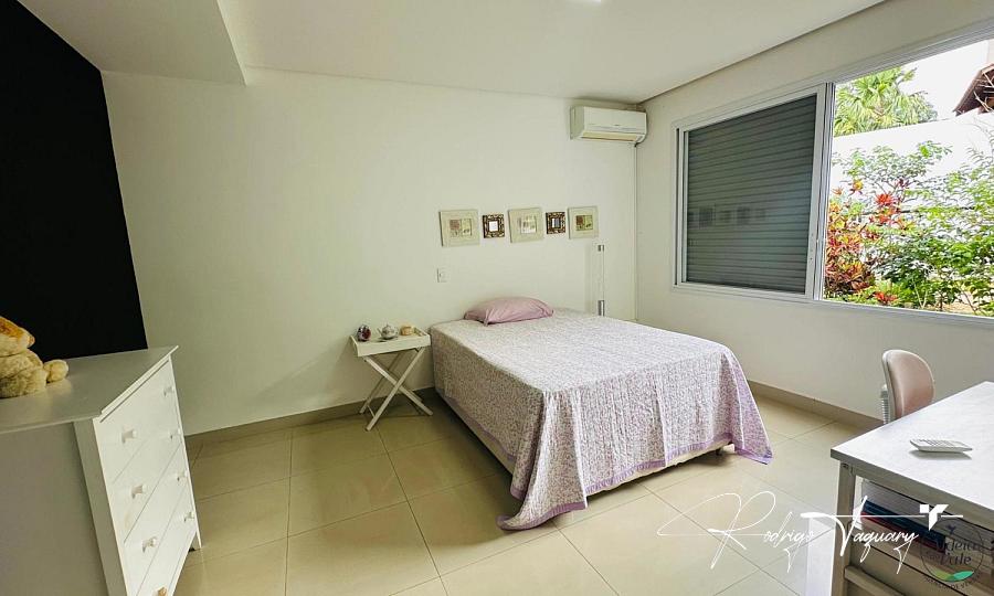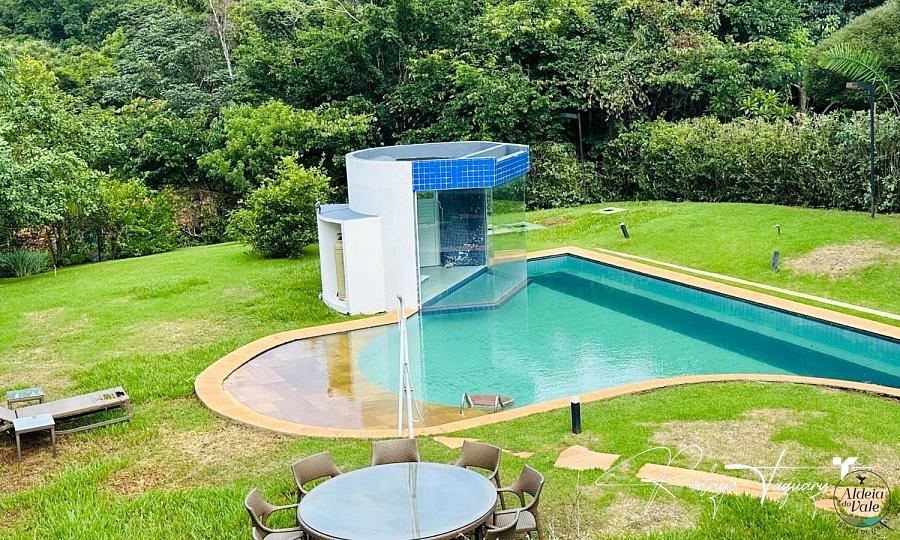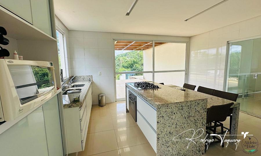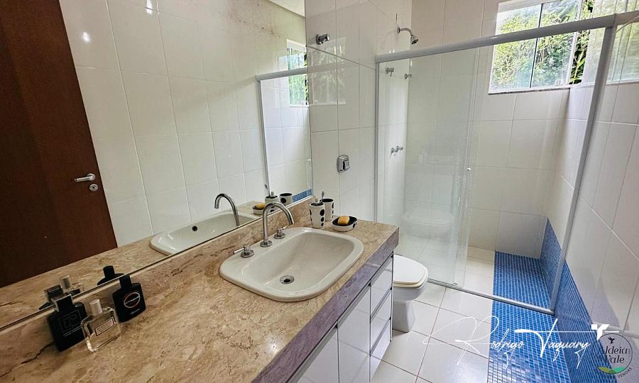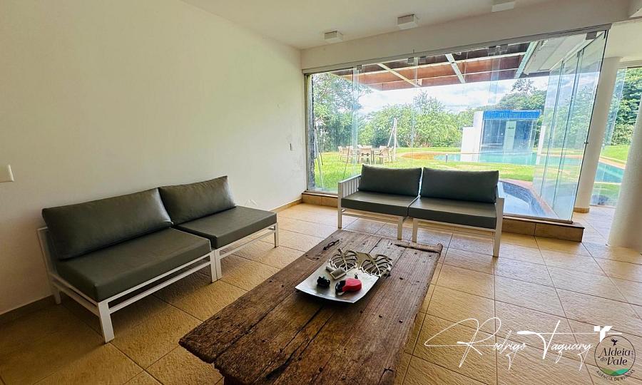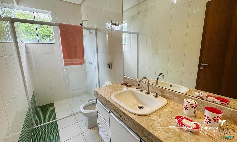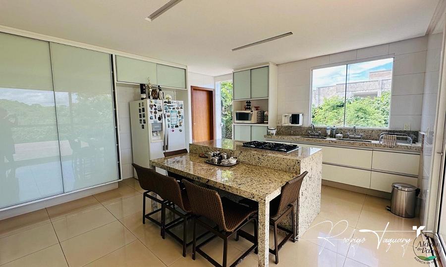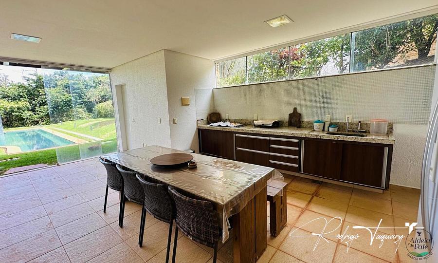Sobrado exclusivo no Aldeia do Vale, com vista definitiva para o lago e a mata. Projeto funcional com ambientes integrados: salas de estar, jantar e TV, cozinha com varanda e lavabo. No piso superior, 4 suítes, incluindo a máster com closet, hidromassagem e varanda privativa. Garagem coberta para 2 veículos.