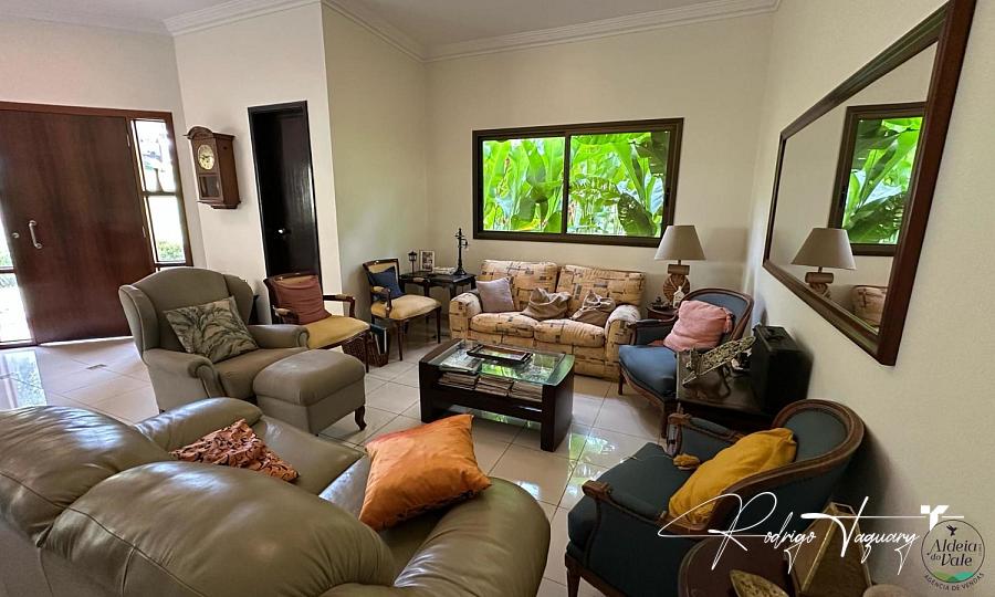 Sobrado à venda no Aldeia do Vale, com 5 suítes, projeto sofisticado, lazer completo e ambientes amplos em um dos condomínios mais exclusivos de Goiânia. Residência com áreas sociais integradas, suíte máster com hidro e closet, além de sótão preparado para uma 6ª suíte.