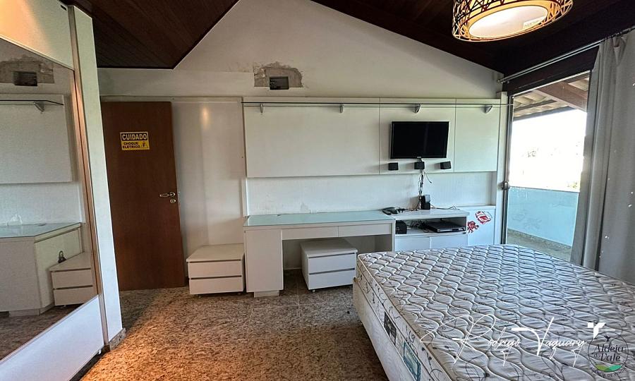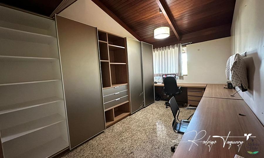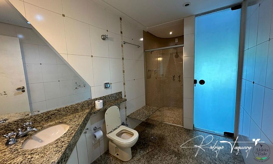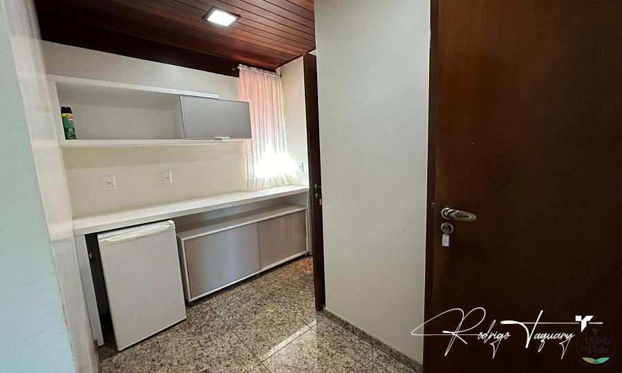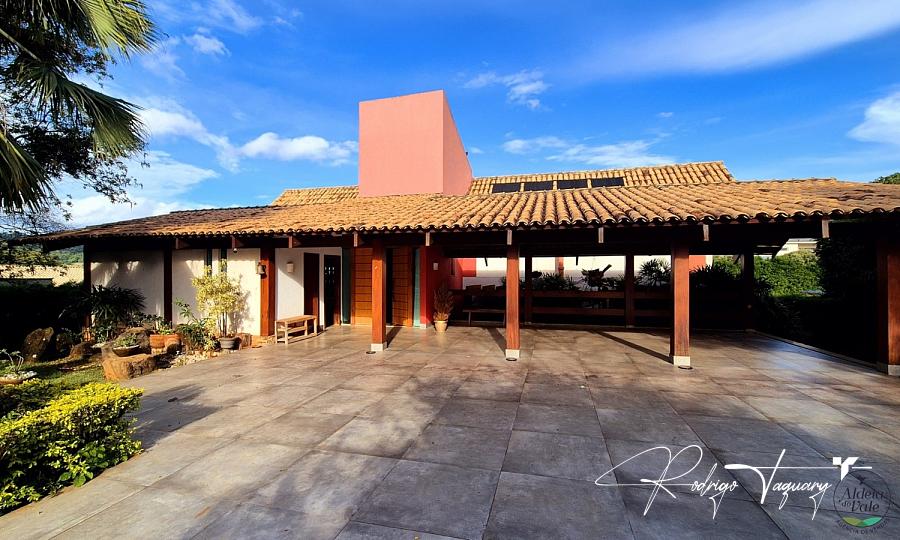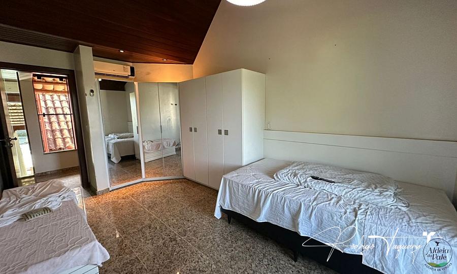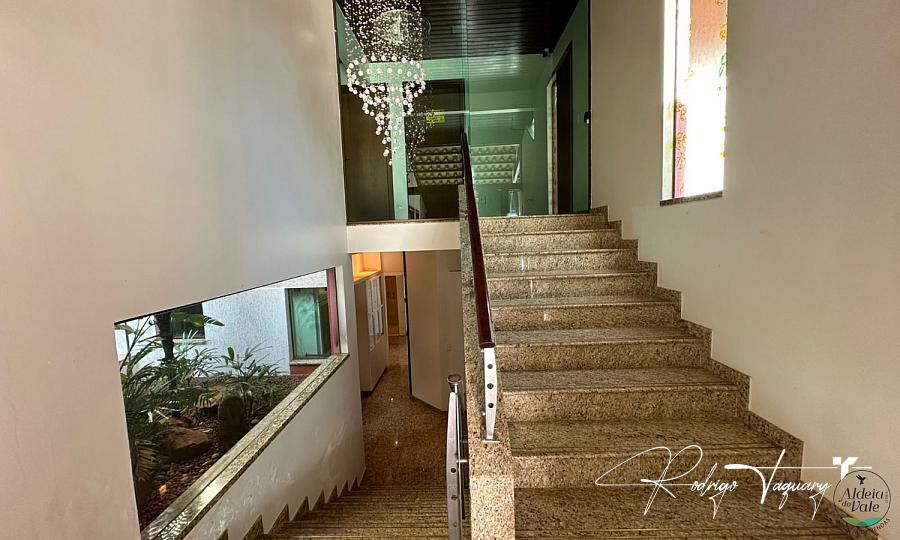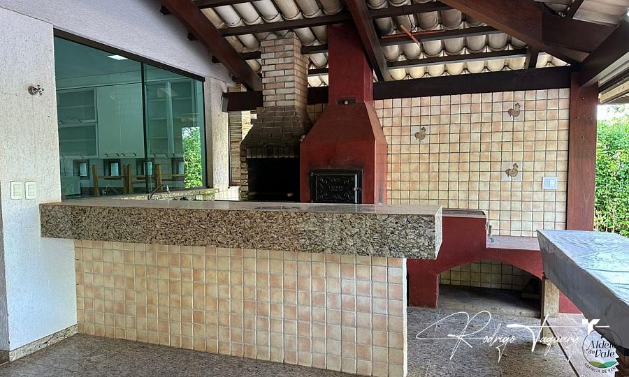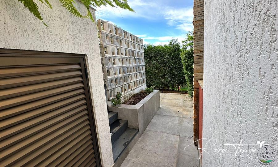 Sobrado no Aldeia do Vale, bem localizado próximo à portaria, com projeto funcional, ambientes aconchegantes e lazer completo. No térreo, sala de estar e home TV com lareira, 1 quarto, banheiro social, cozinha ampla, despensa e integração com a área externa.