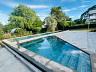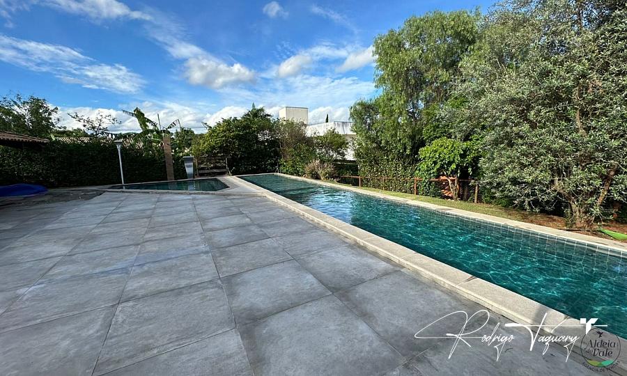 Varanda gourmet espaçosa com churrasqueira e fogão a lenha | Piscina aquecida com raia e hidromassagem | Amplo espaço de convivência e jardim formado