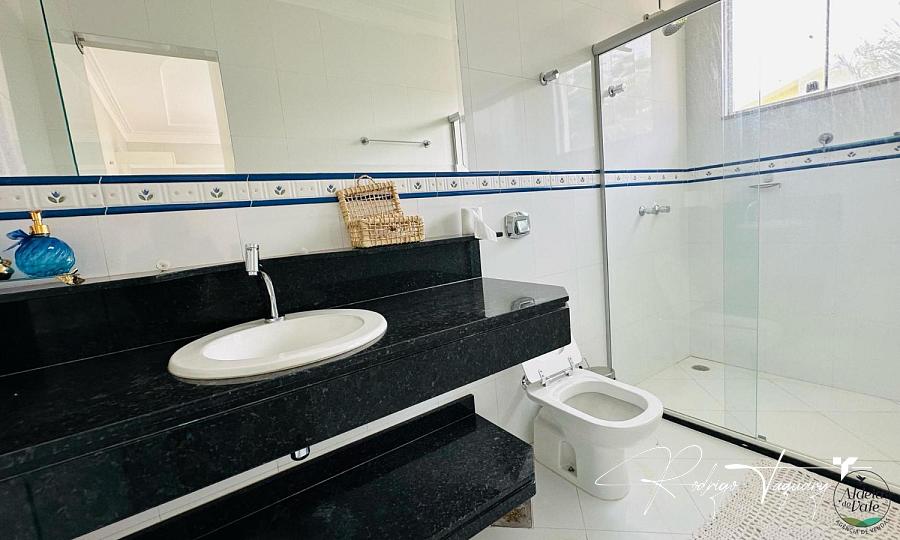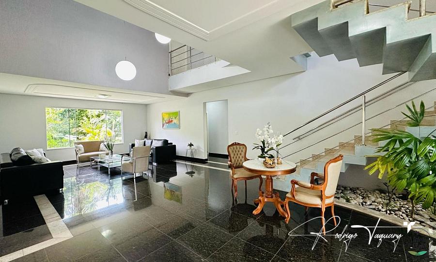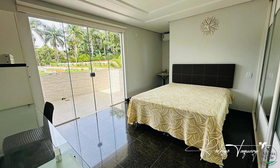 5 suítes | Suíte térrea para hóspedes | Suíte máster com hidromassagem e varanda panorâmica | Acabamento em granito | Armários planejados | Localização privilegiada e privativa