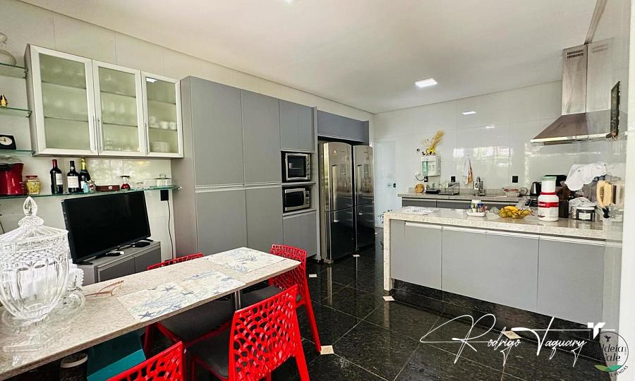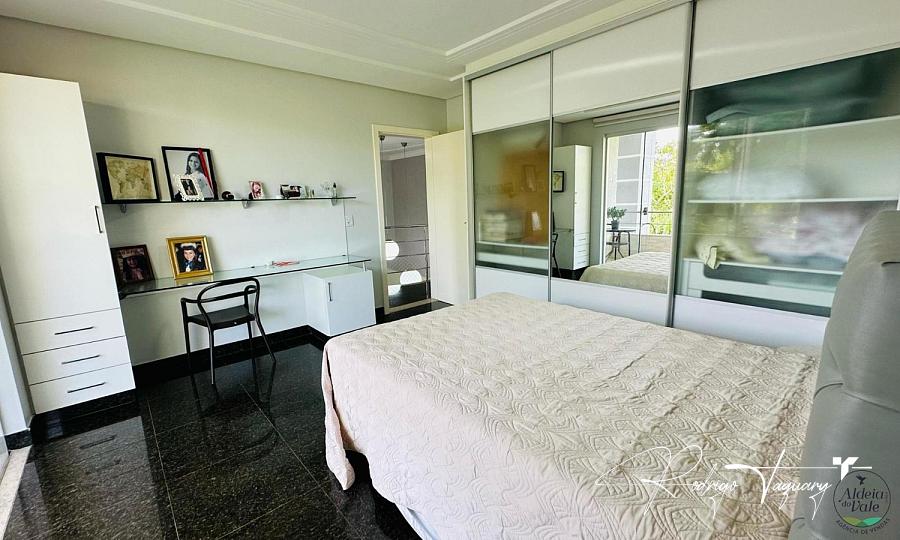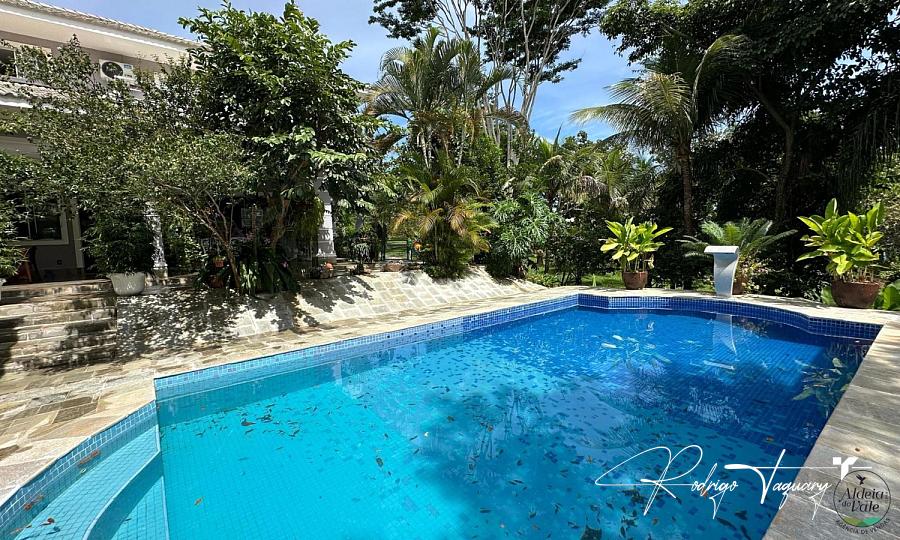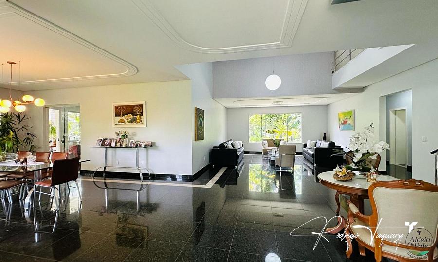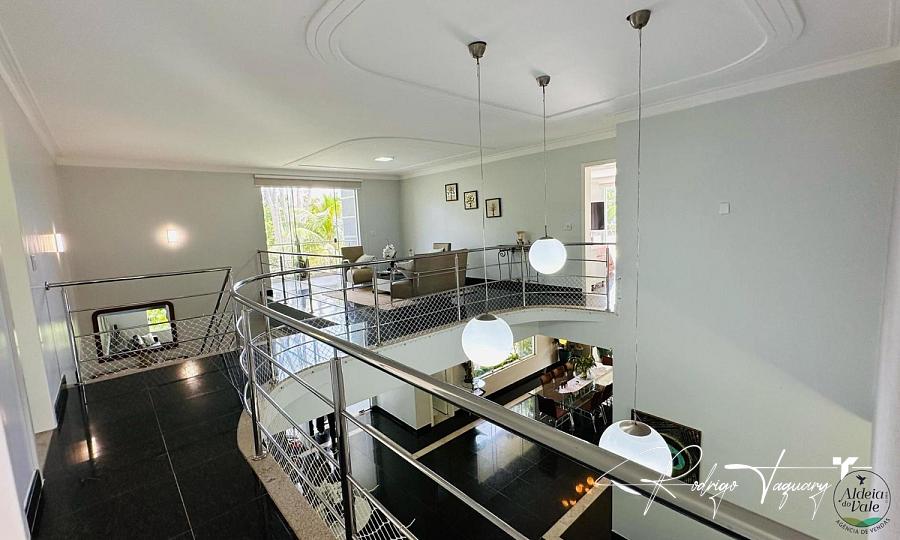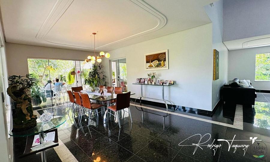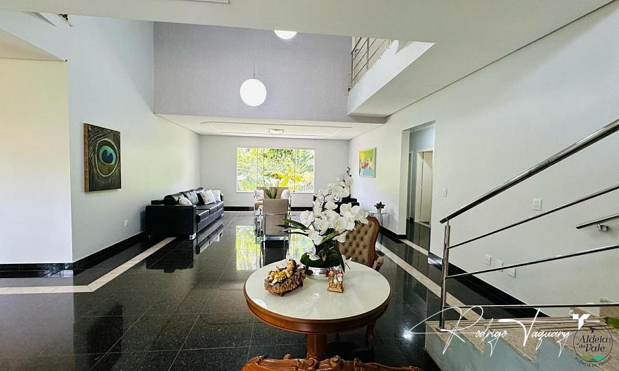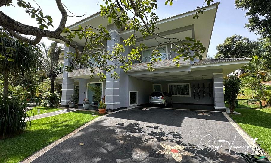 Casa à venda no Aldeia do Vale com vista definitiva para o lago e área verde preservada. Projeto funcional e imponente, com 5 suítes, incluindo uma suíte térrea para hóspedes e máster com hidromassagem e varanda panorâmica. Ambientes amplos e integrados, com ventilação cruzada e excelente iluminação natural.