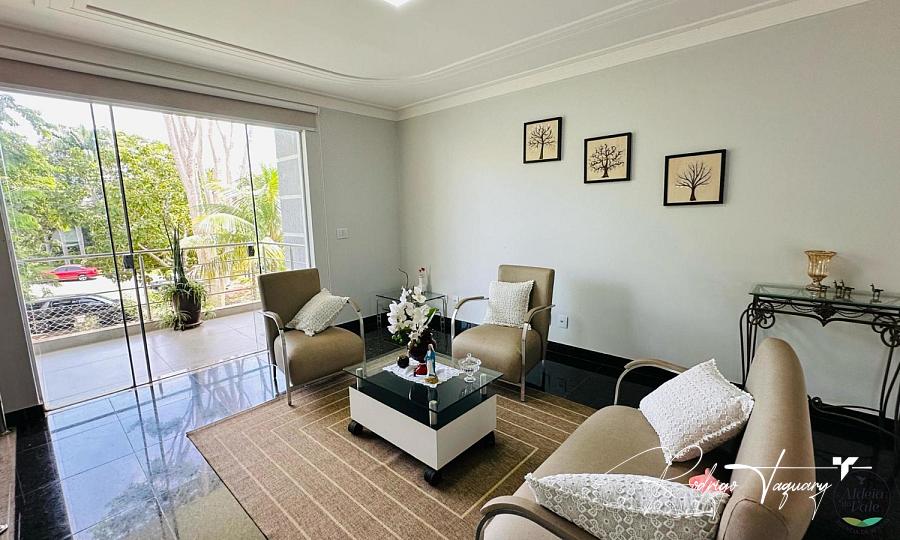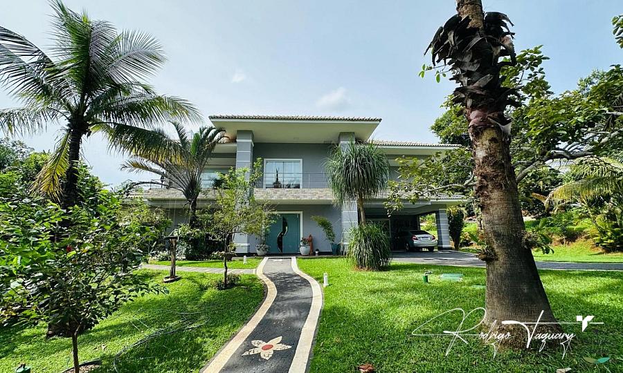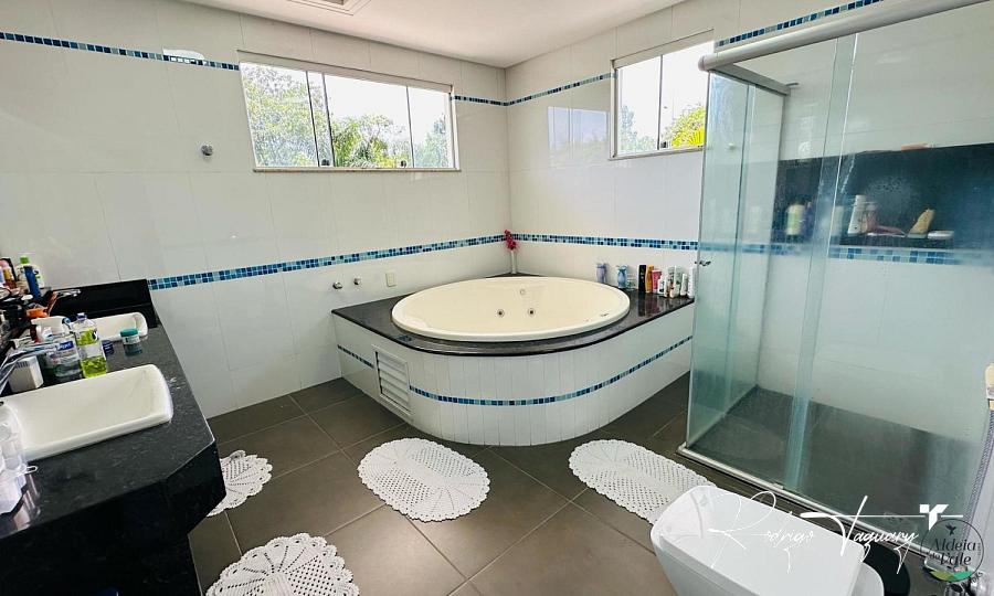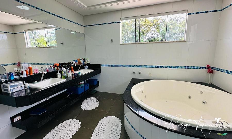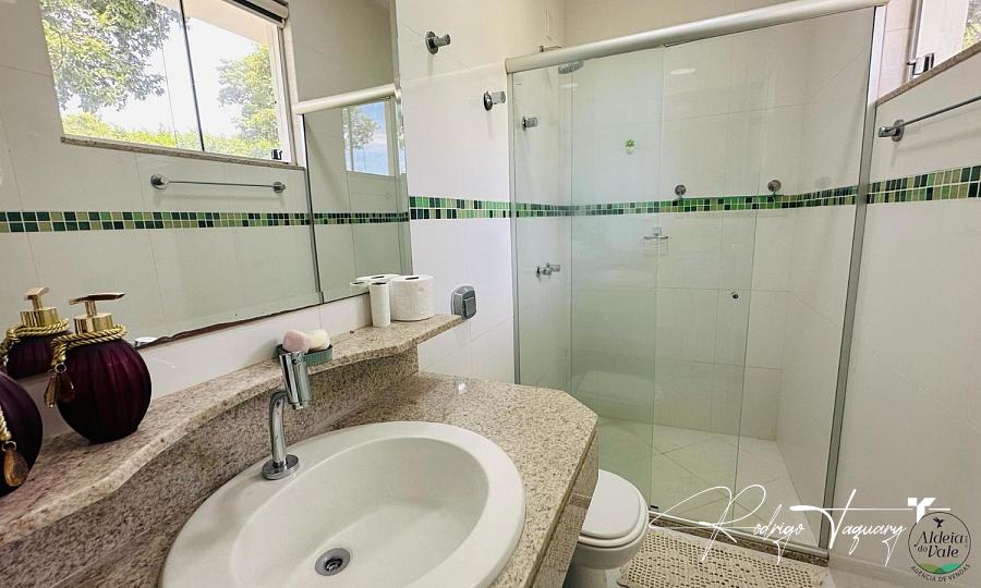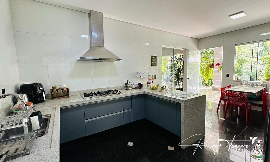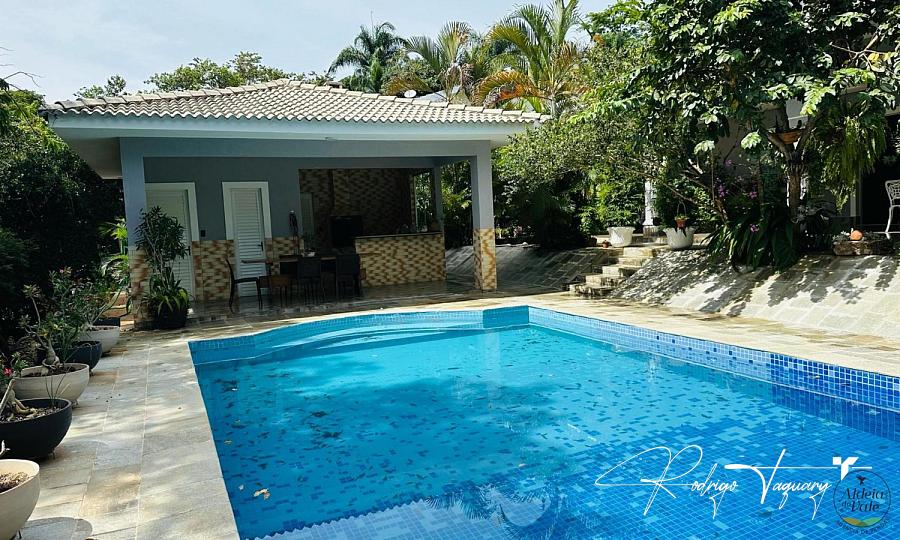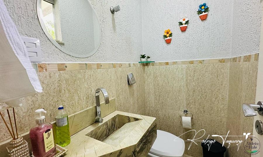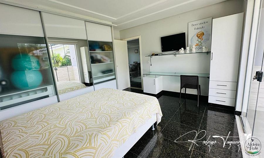 Casa à venda no Aldeia do Vale com vista definitiva para o lago e área verde preservada. Projeto funcional e imponente, com 5 suítes, incluindo uma suíte térrea para hóspedes e máster com hidromassagem e varanda panorâmica. Ambientes amplos e integrados, com ventilação cruzada e excelente iluminação natural.