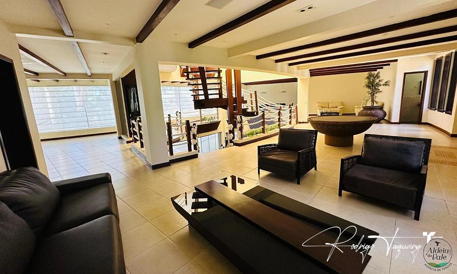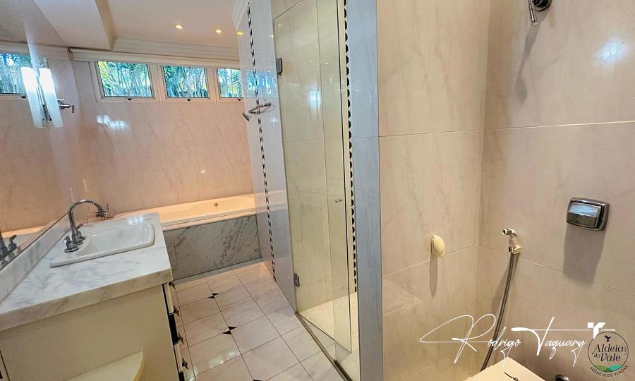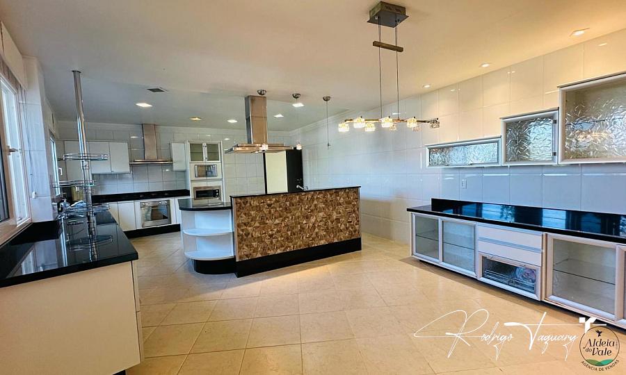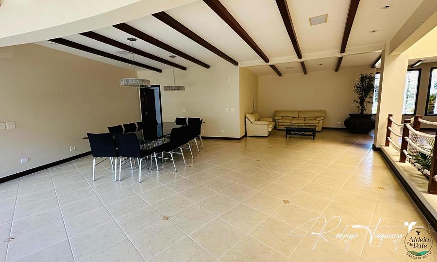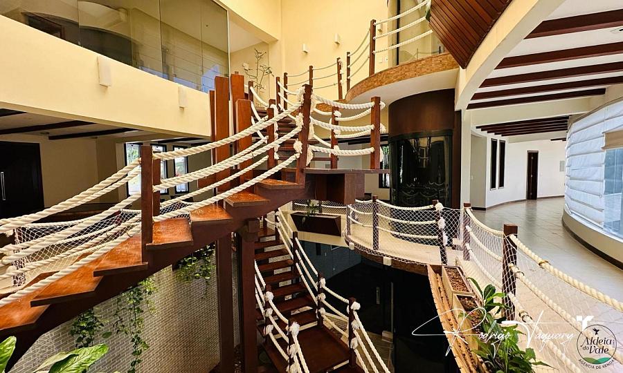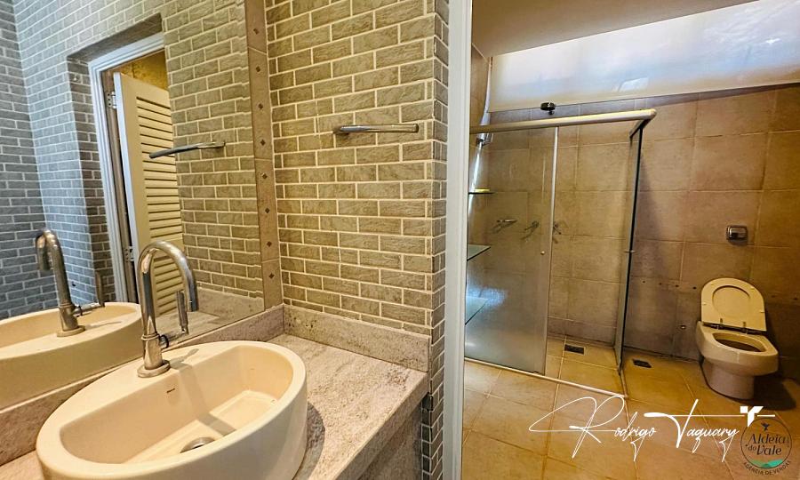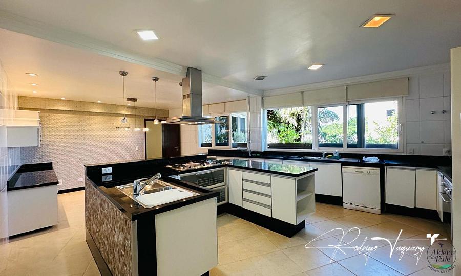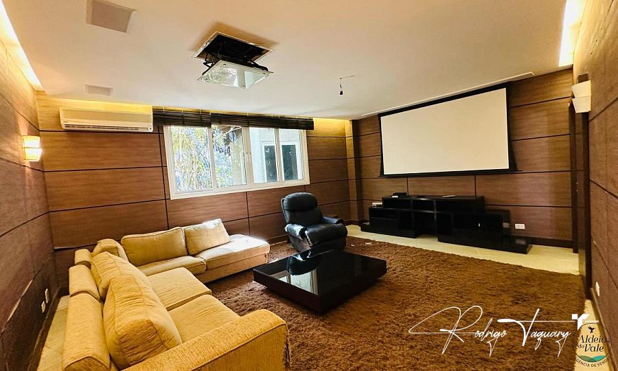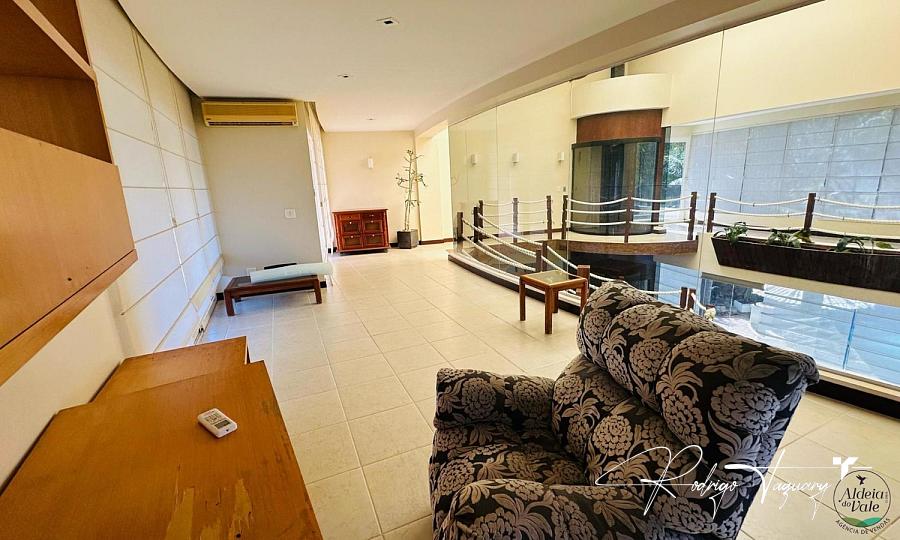 Residência imponente no Aldeia do Vale, projetada para unir sofisticação, conforto e integração com a natureza. No térreo, sala de estar para 3 ambientes, sala de jantar, home theater, lavabo e 4 suítes plenas com closet e hidromassagem. Cozinha, despensa, área de serviço e DCE completam o pavimento.