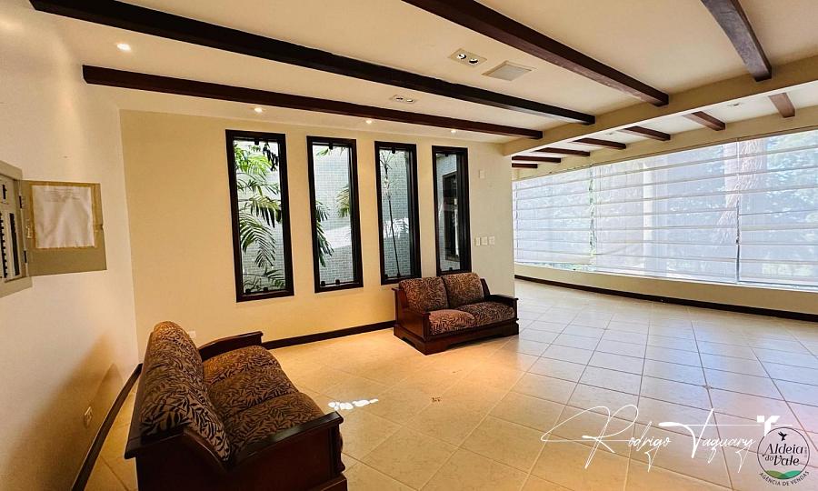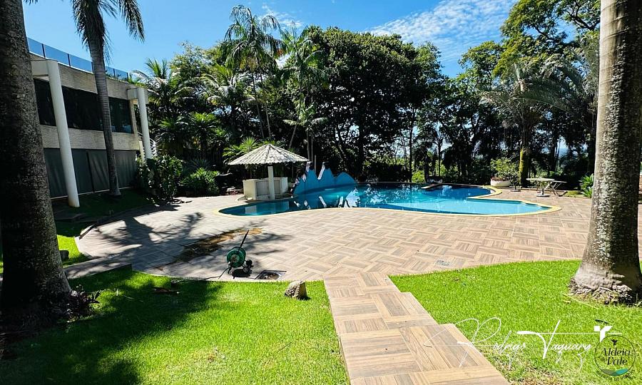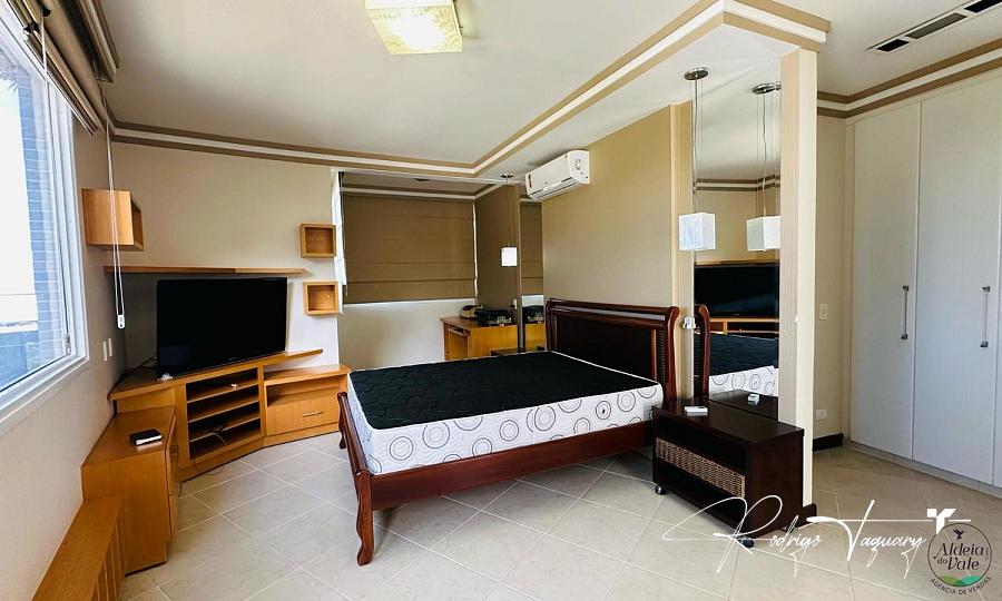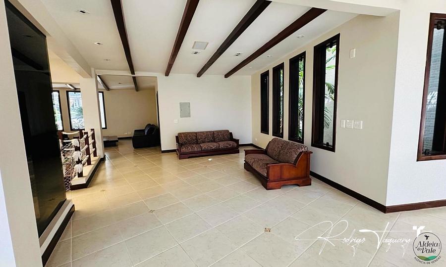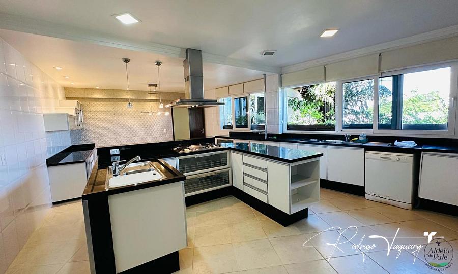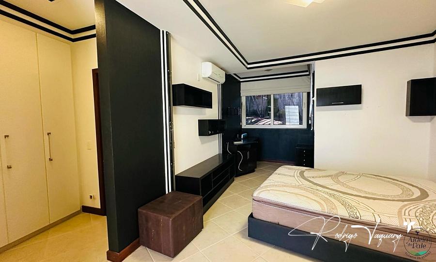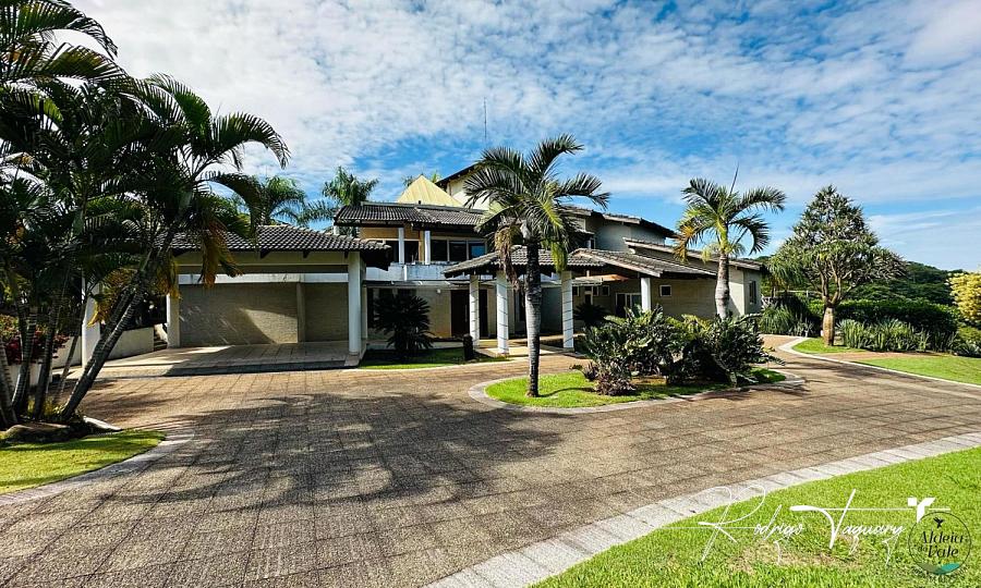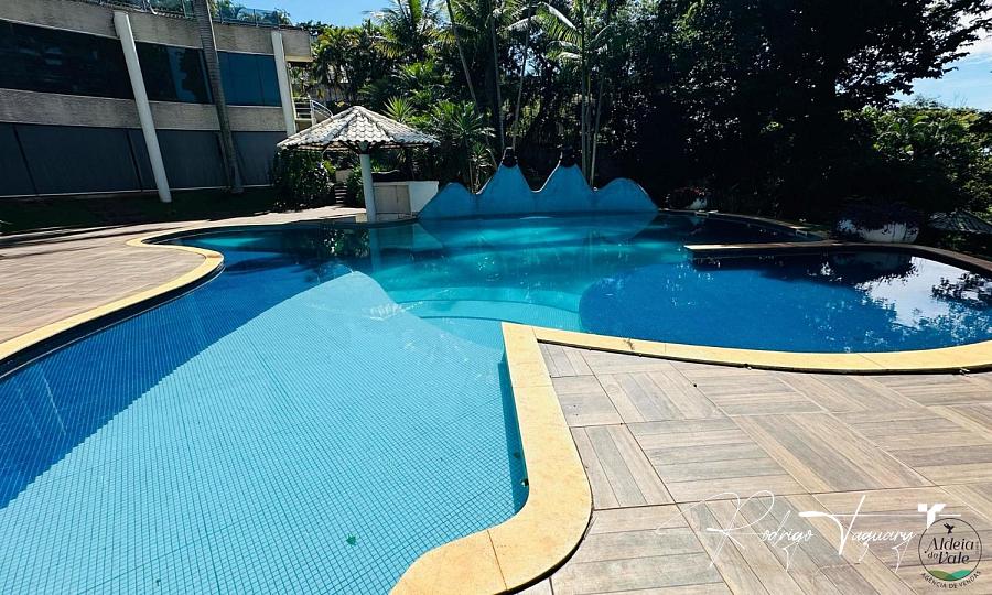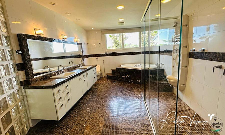Residência imponente no Aldeia do Vale, projetada para unir sofisticação, conforto e integração com a natureza. No térreo, sala de estar para 3 ambientes, sala de jantar, home theater, lavabo e 4 suítes plenas com closet e hidromassagem. Cozinha, despensa, área de serviço e DCE completam o pavimento.