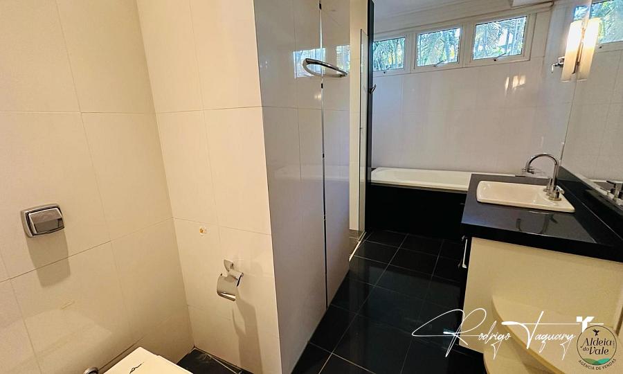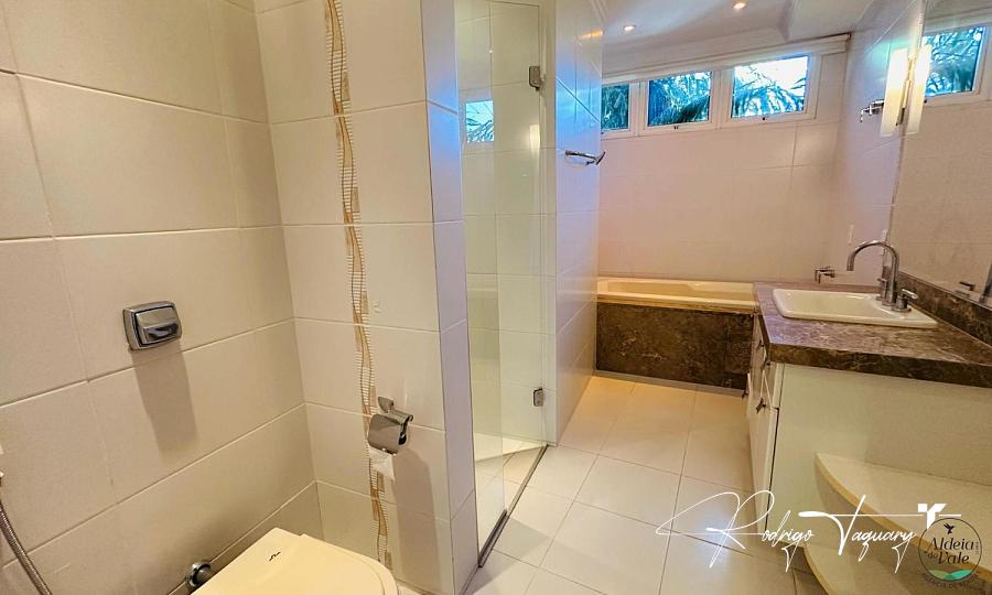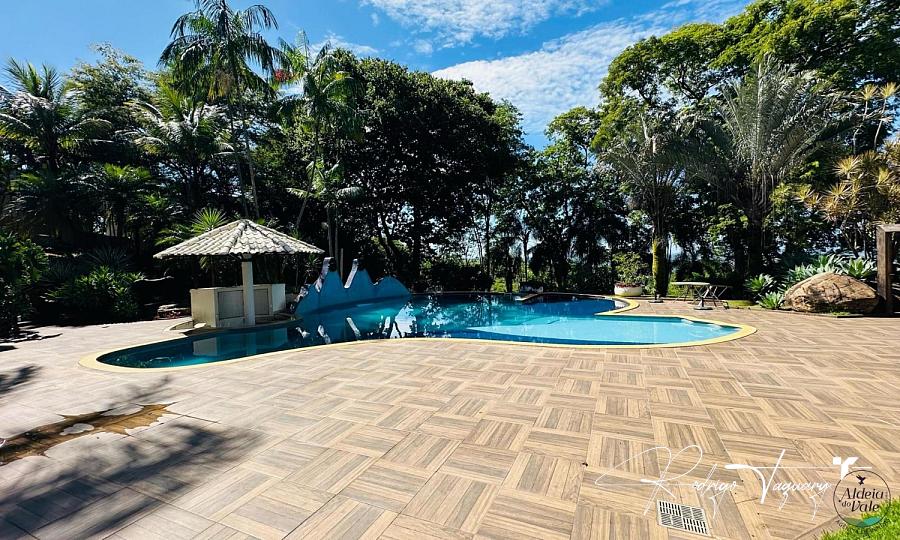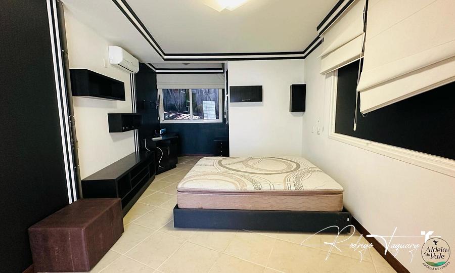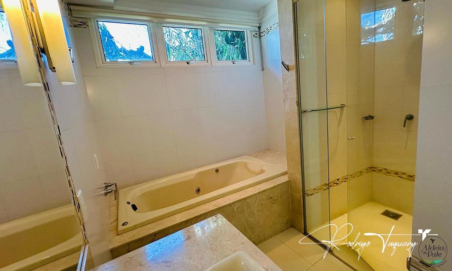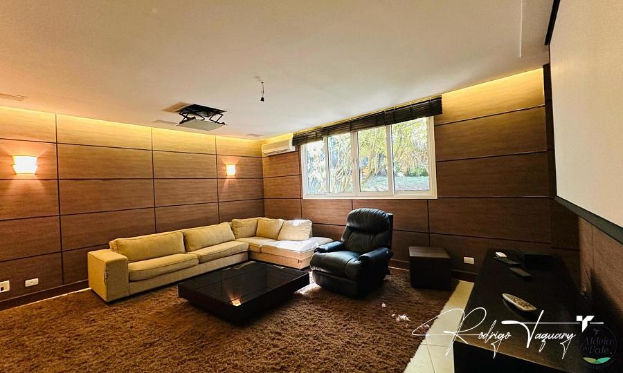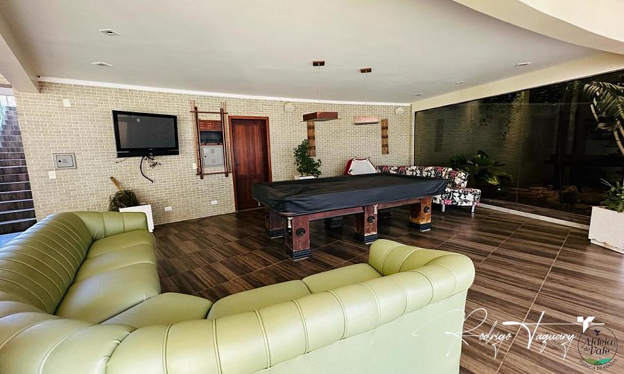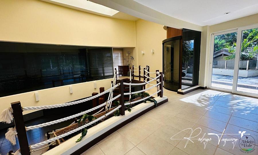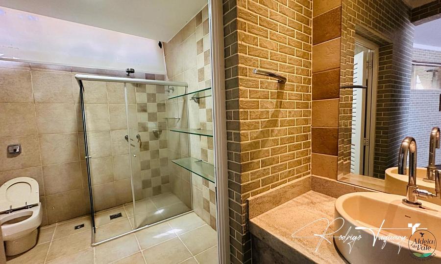 Residência imponente no Aldeia do Vale, projetada para unir sofisticação, conforto e integração com a natureza. No térreo, sala de estar para 3 ambientes, sala de jantar, home theater, lavabo e 4 suítes plenas com closet e hidromassagem. Cozinha, despensa, área de serviço e DCE completam o pavimento.