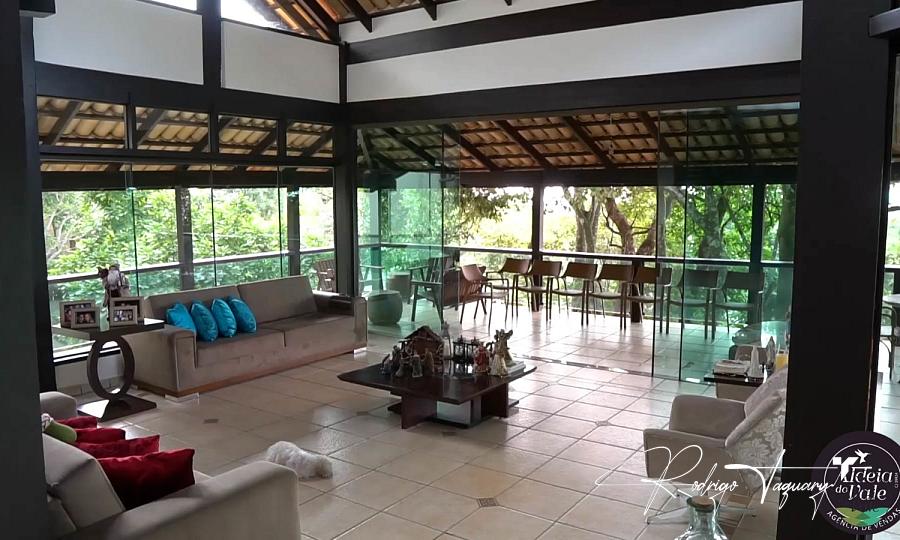 Sobrado espetacular no Aldeia do Vale, com 1.333,97 m² de área construída em um terreno de 5.000 m². Projeto estilo fazenda, que une sofisticação, conforto e integração total com a natureza. São 5 suítes com varanda, incluindo máster em 2 pavimentos, além de escritório, home, sala íntima, sala de estar ampla, sala de jogos, academia e hall com elevador.