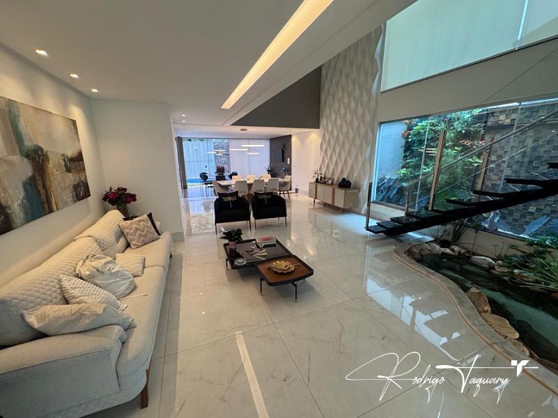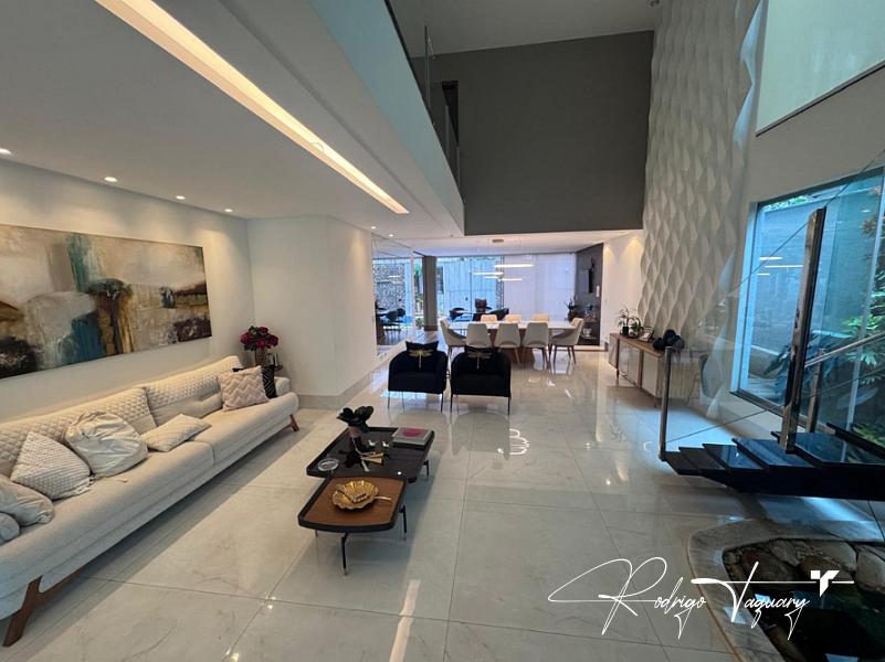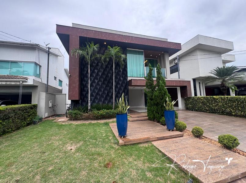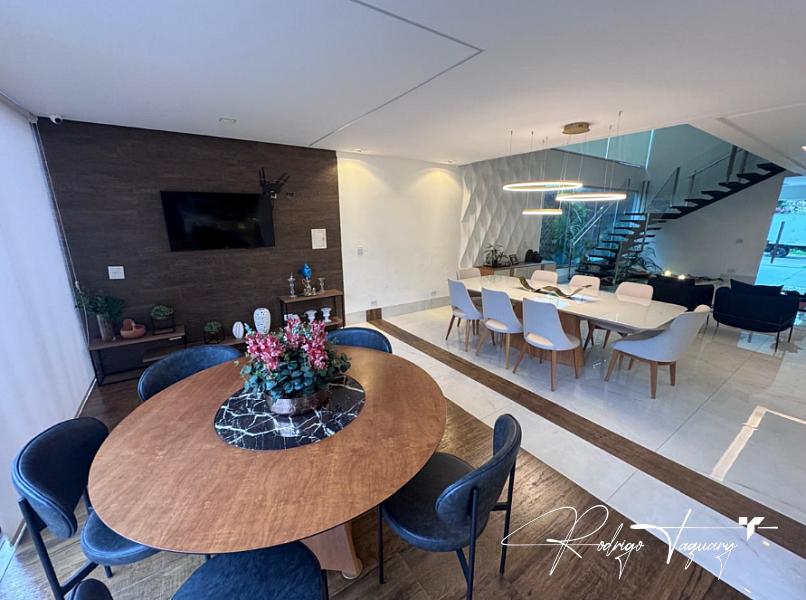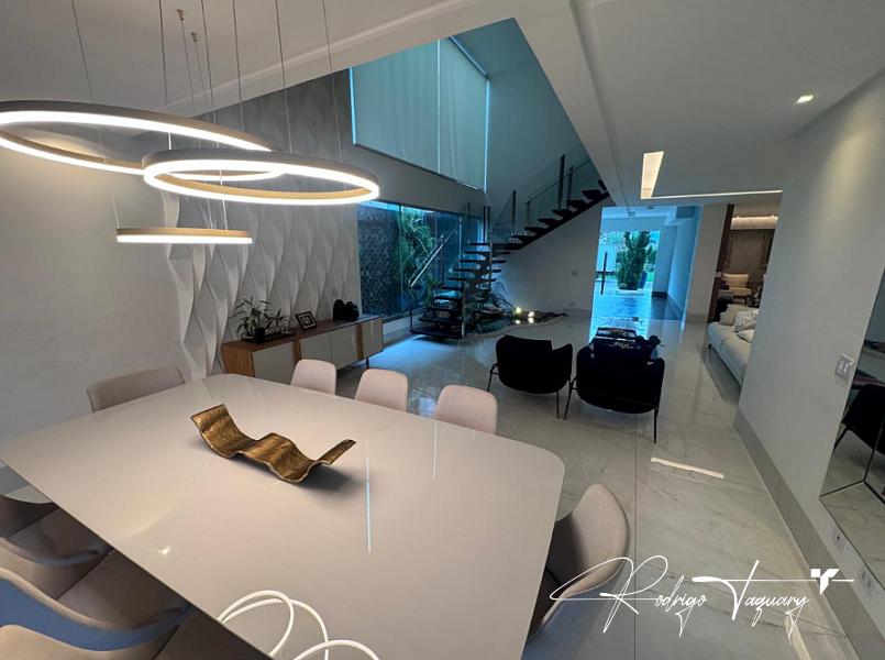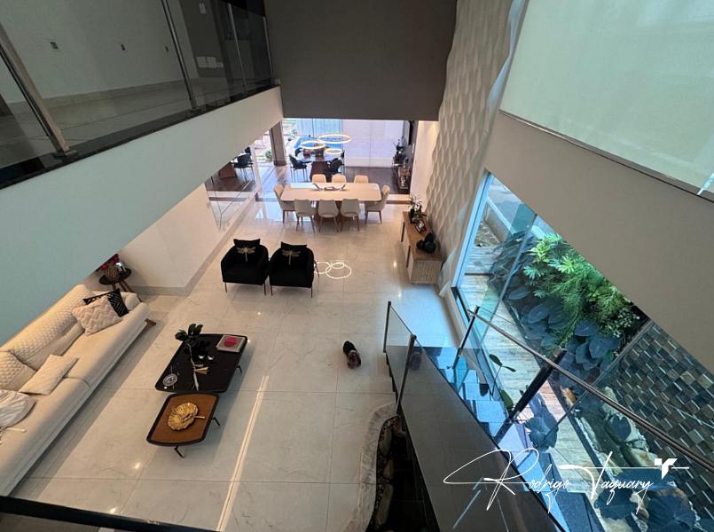 Casa de condomínio à venda no Jardins Madri, modelo sobrado, com 338 m² de área construída, 4 suítes, 4 vagas de garagem e piscina privativa. Imóvel de alto padrão, totalmente mobiliado, com projeto moderno, ambientes amplos e excelente iluminação natural.