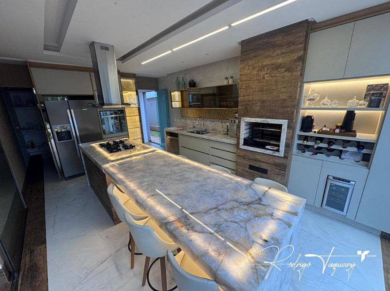 Planta funcional e bem distribuída, com salas integradas para vários ambientes, cozinha completa com armários planejados e área gourmet integrada com churrasqueira. Destaque para a suíte master com closet, piscina com pergolado e climatização em todos os ambientes, proporcionando conforto, sofisticação e praticidade no dia a dia.