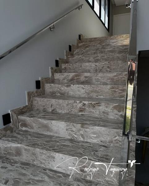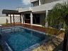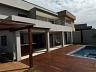 Piscina aquecida com deck em madeira e churrasqueira a carvão, pergolado em angelim, paisagismo implantado, porcelanato acetinado e pedras nobres como mármore Bege Bahia, quartizito Infinity e granito São Gabriel.