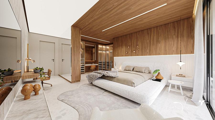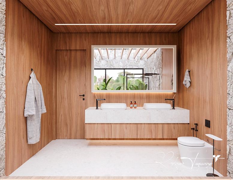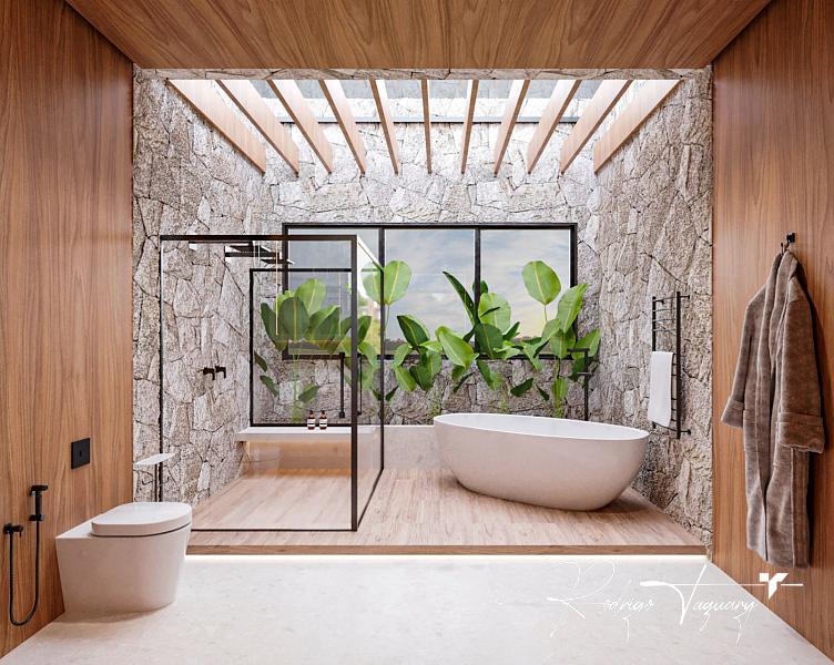 – Suíte máster com closet, banheira, claraboia e cuba dupla
