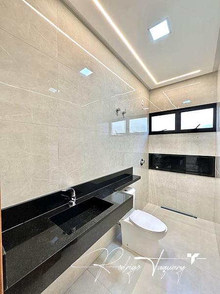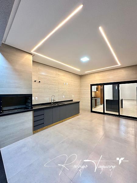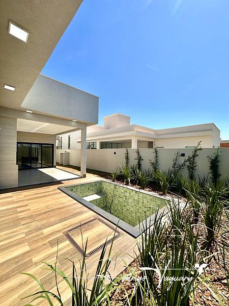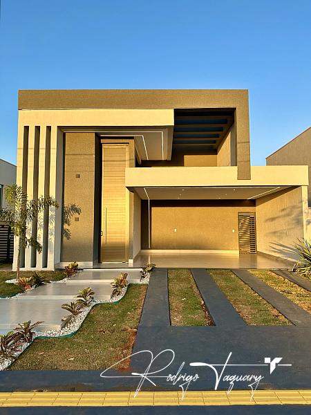 Residência exclusiva no Terras Alpha 1, com fachada imponente e arquitetura contemporânea. São 175 m² construídos em terreno de 360 m², com 3 suítes plenas, sendo 1 máster com closet e banheiro de apoio à piscina. Ambientes integrados, living com pé direito duplo e acabamento de alto padrão.