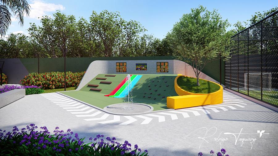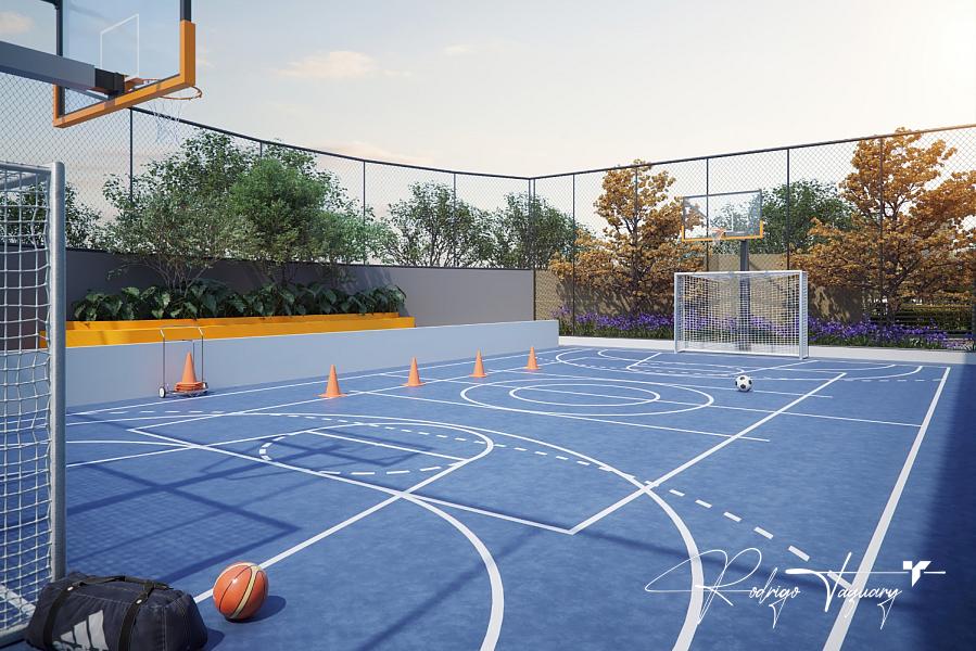 Piscinas adulto e infantil, salão gourmet, espaço fitness, playground e quadra poliesportiva.