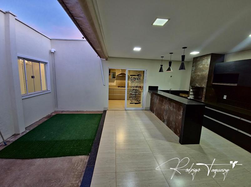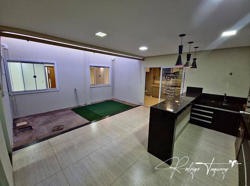 3 quartos (1 suíte) | Sala para 2 ambientes | Cozinha integrada | Espaço gourmet com churrasqueira | Lavanderia + despensa | Banheiro social | Pergolado decorativo | Porcelanato | 3 vagas de garagem
