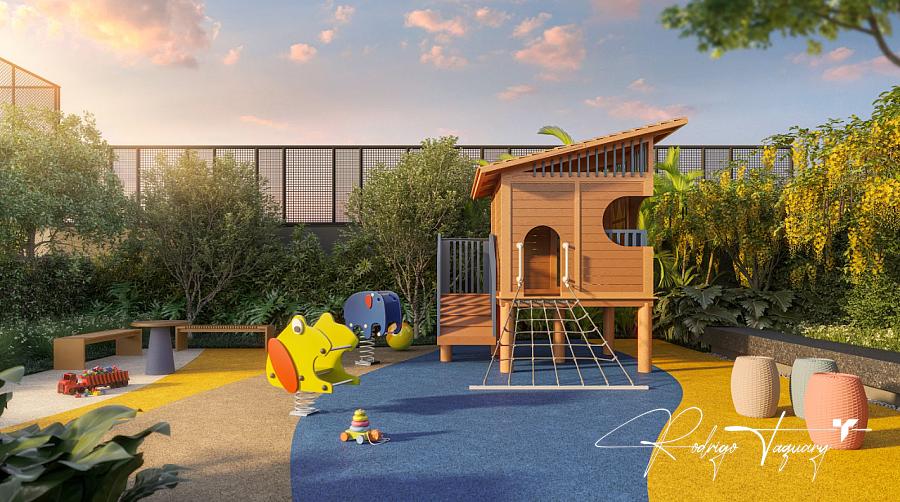 Piscinas adulto e infantil, espaço gourmet, academia, salão de festas, brinquedoteca, playground, espaço wellness e áreas de convivência.