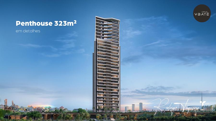 Penthouse exclusiva à venda no Opus Ybaté, com 323,6 m², 4 suítes amplas, varanda gourmet com churrasqueira, piscina privativa, banheiros com ventilação natural e 3 vagas de garagem. Unidade única, com acabamentos de alto padrão, elevador privativo e integração perfeita entre sofisticação, conforto e privacidade.