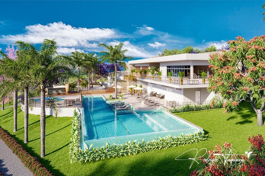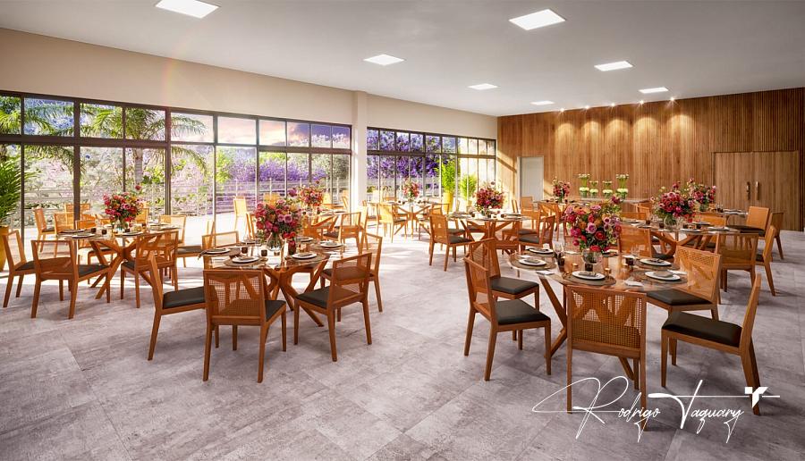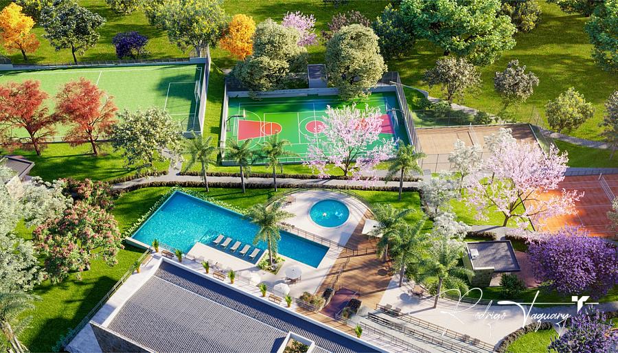 Segurança 24h, portaria com controle de acesso, monitoramento, quadras esportivas, academia, salão de festas, playground, pista de caminhada e áreas verdes com paisagismo.